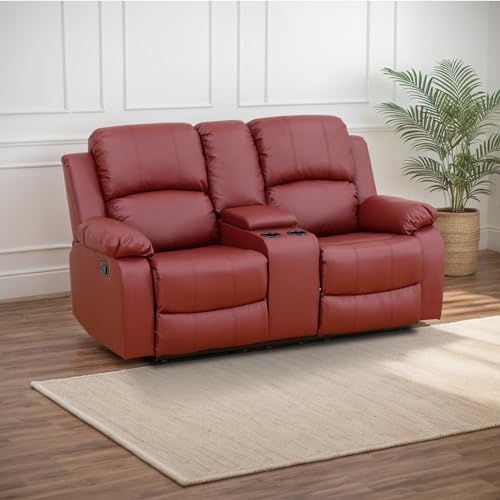 Sofa Set Recycled Leather Sofa Set for Living Room, Recliner Couch Set for Home/Office/Theater with Storage Console and Cup Holders,Leather (3-Pieces/Sofa+Loveseat+Chair) (Brown)