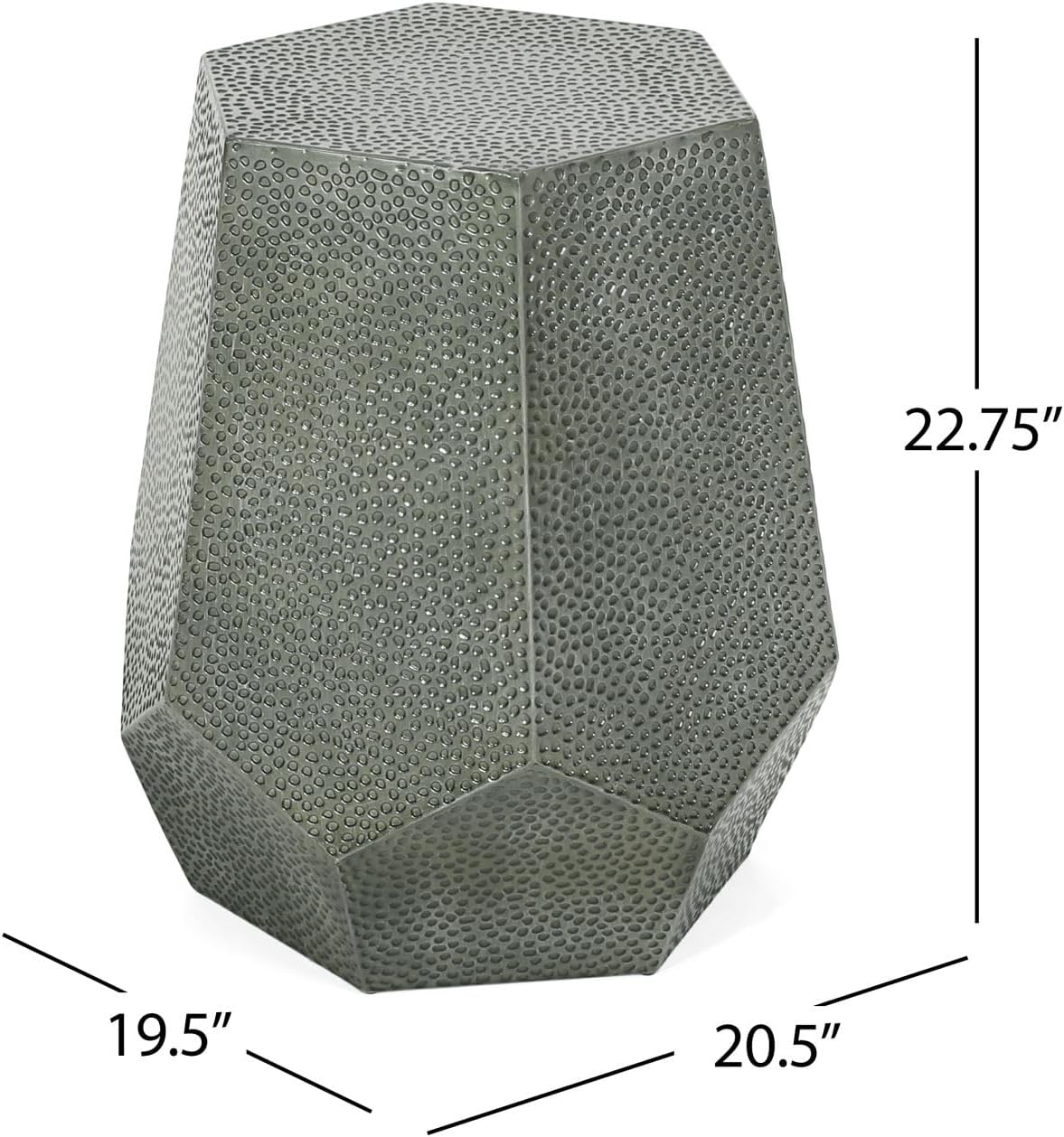 Modern Metal Hammered Geometric Side Table, Side Table 20"" x 20"" x 23"", for The Living Room and Den, Silver, Bronze, Gold