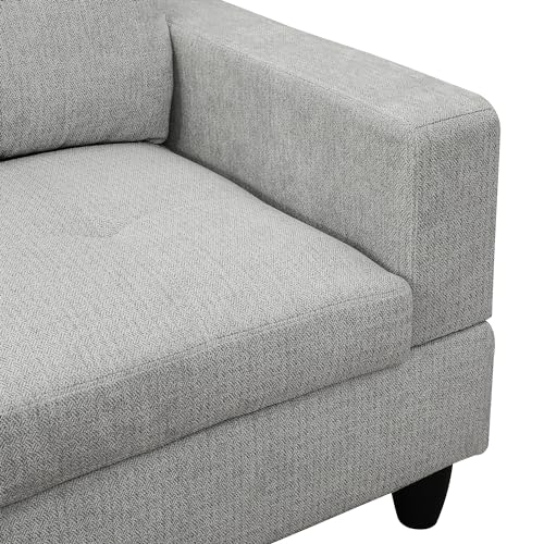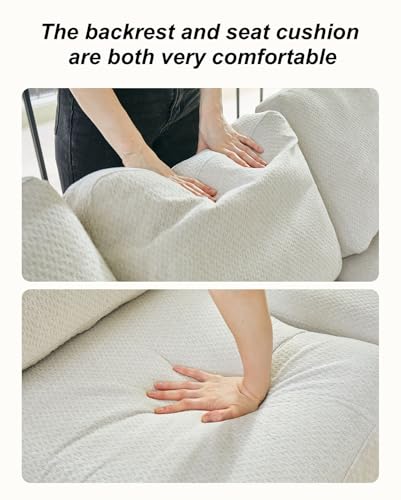 Sectional Sofa Couch Convertible L Shaped Couches with Solid Wooden Frame & Padded Cushions Chair with Durable Square Metal Legs (Off white, 56.69" L*25.98" W*25.2" H)