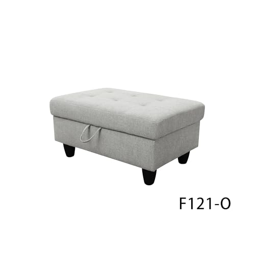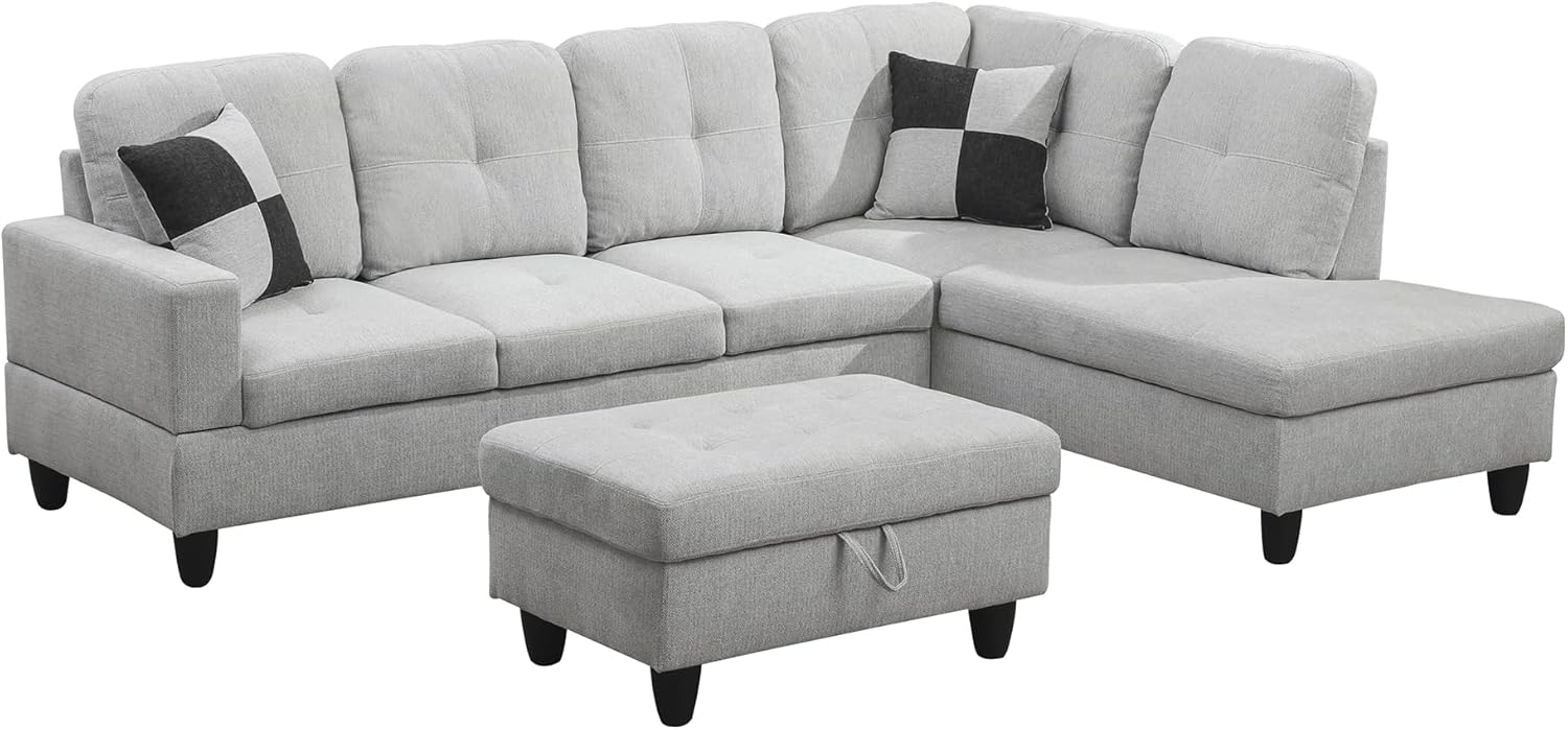 3-Piece L Shape Sectional Sofa with Left Chaise, Storage Ottoman and Button Tufted Backrest, Modern Flannel Living Room Couch Set for Office, Apartment, Off White