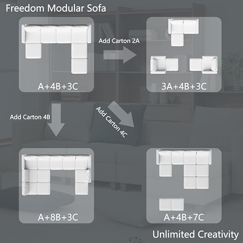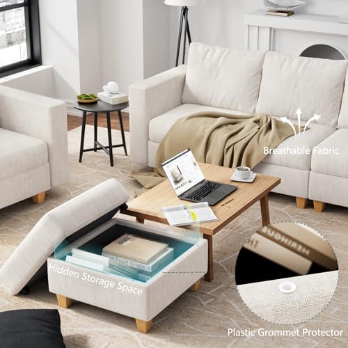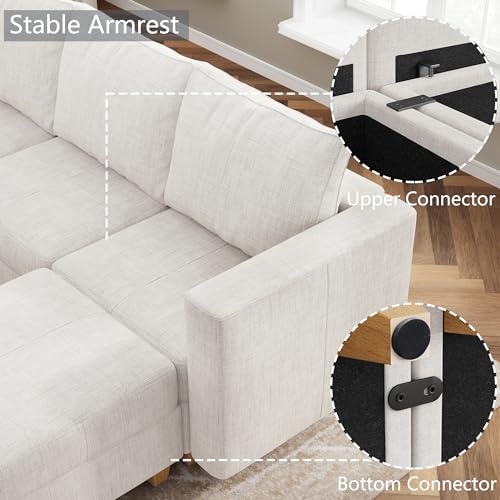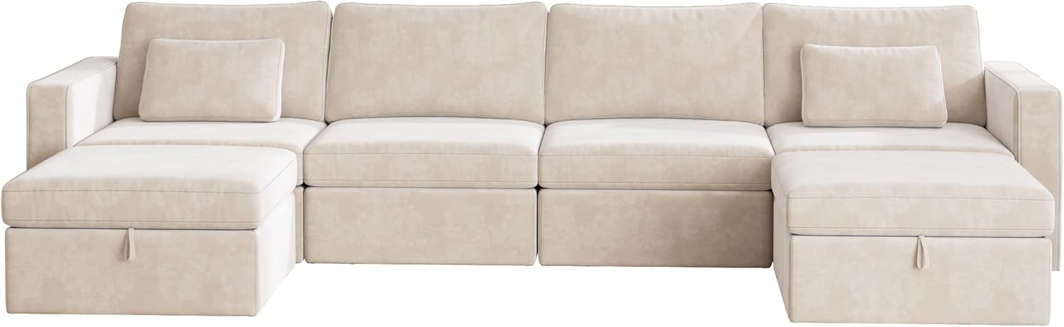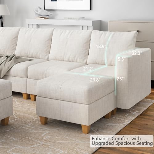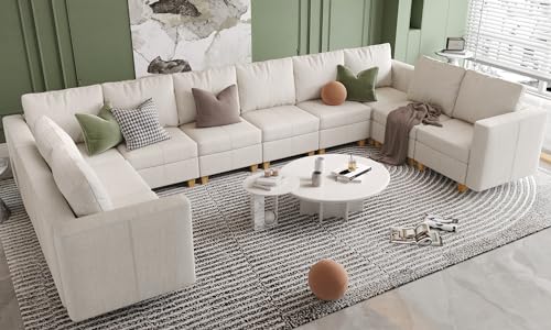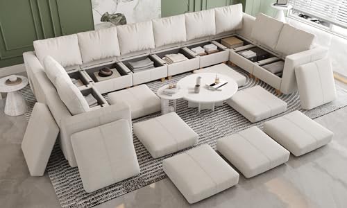 U Shaped Oversized Modular Sectional Sofa with Rearrangeable Chaise and Ottoman, 145" Large Sectional Couche 9 Storage Seater Linen Modular Sofa Off White