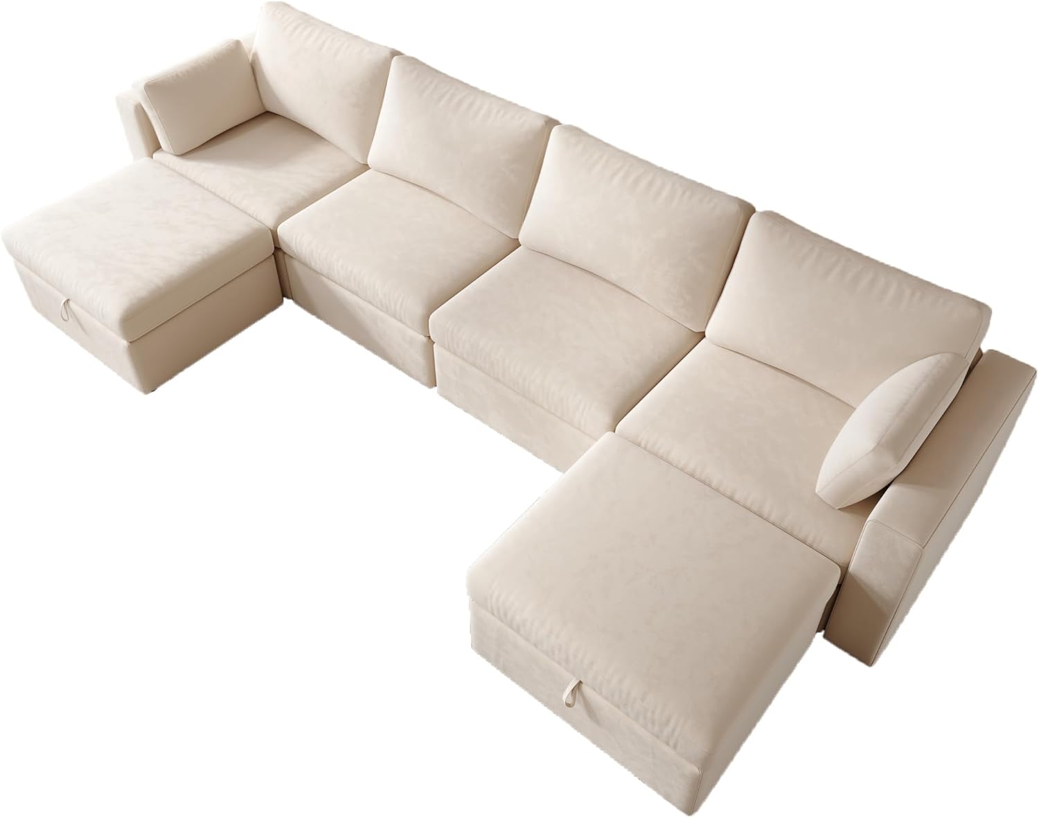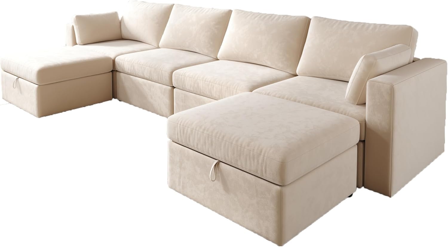 Modern Velvet Fabric Sectional Sofa,L/U-Shape Couch,6 Seats Oversized Upholstery Sectional Sofa,Chaise Couch with Storage Ottomans for Living Room/Loft/Apartment/Office -Off White