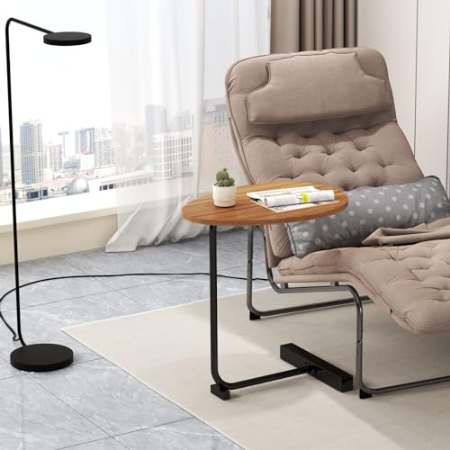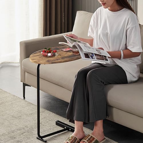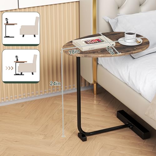 C Shaped End Table, Modern C Shaped Side Table for Sofa and Bedside, Wood C Table End Table Small Couch Side Tables That Slide Under, C Table for Bedroom Living Room, 18”L X 12”W (Rust brown)