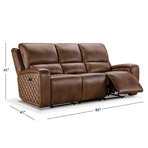 Abbyson Living Premium Top Grain Leather Upholstered Power Reclining Sofa, Grey