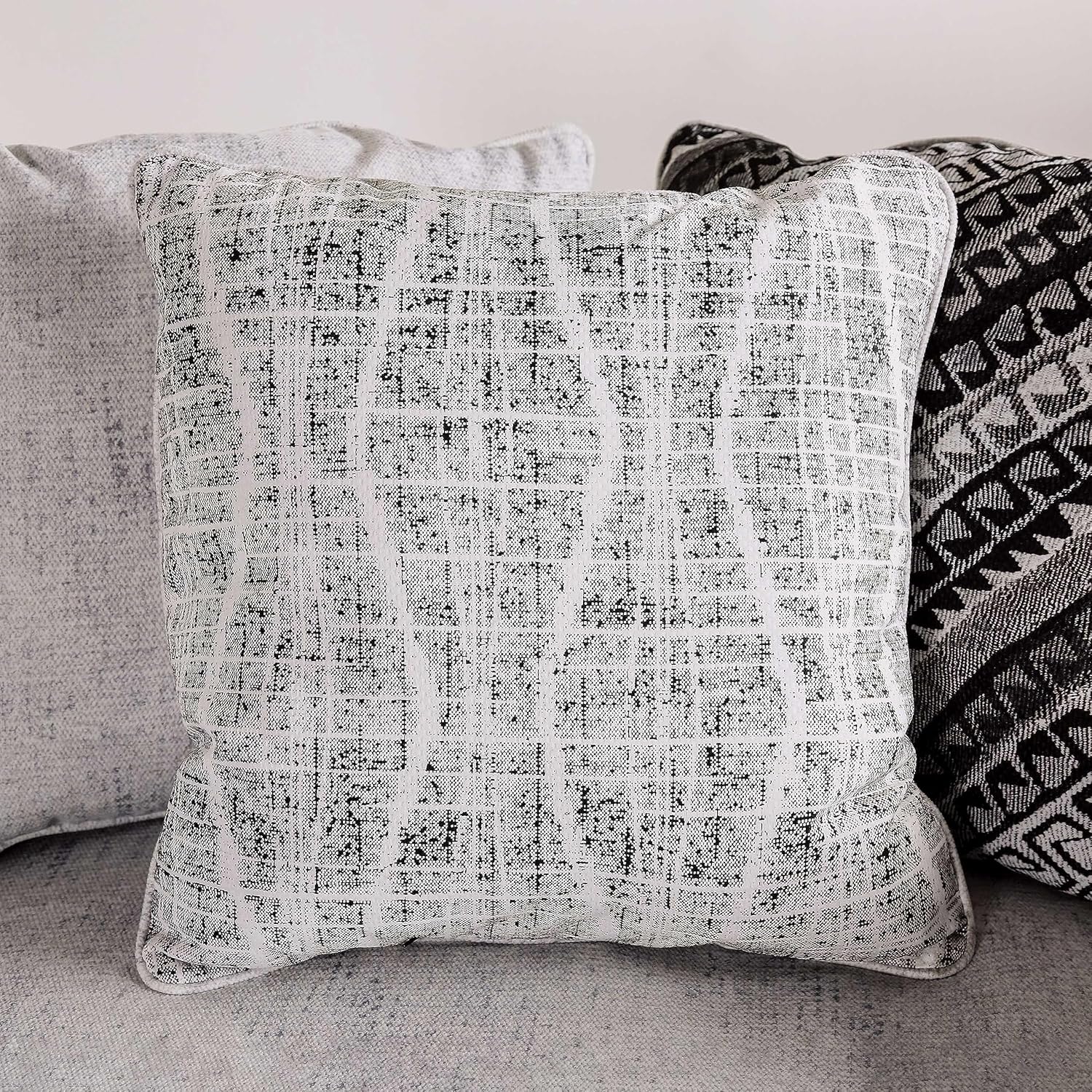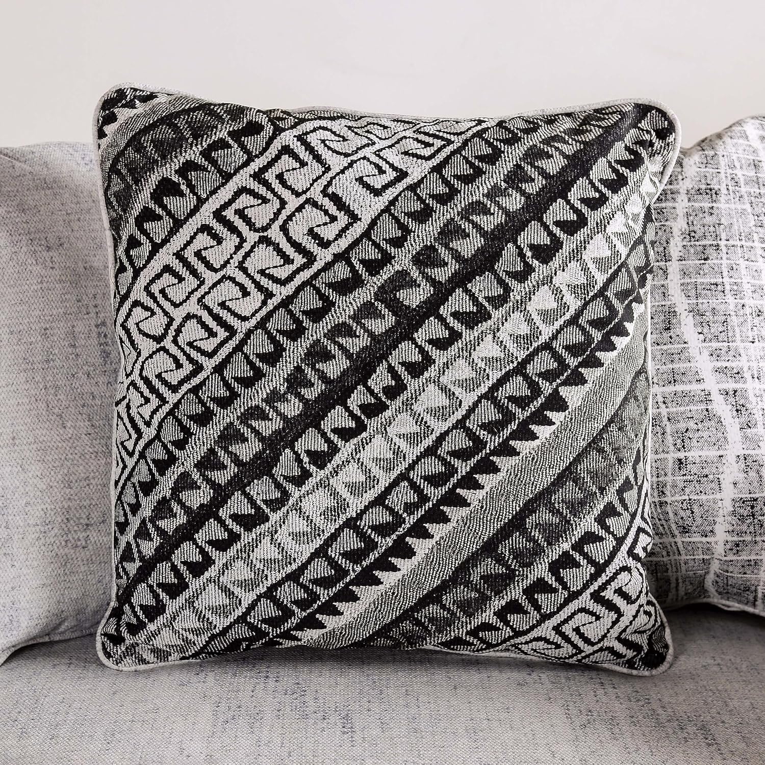 Furniture of America Mithril Transitional Fabric Upholstered L-Shaped Sectional, Reversible Zipper Cushions and Loose Pillow Backs for Living Room, Apartment, Home Office, Off-White and Black