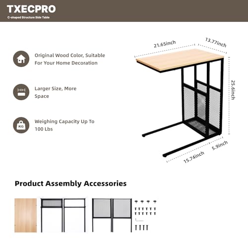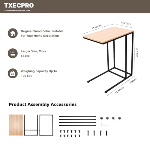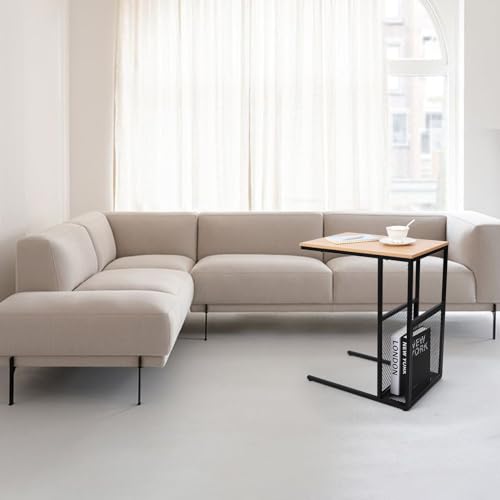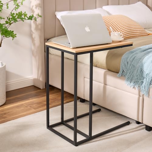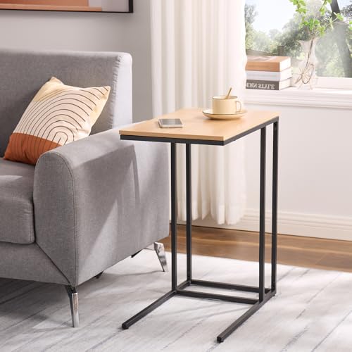 C Table End Table Set of 2, Side Tables Living Room, C Shaped Side Table, Couch Tables That Slide Under Couch Table with Metal Frame, Large Desktop C Table for Living Room, Bedroom,