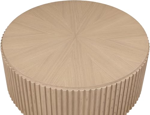Meridian Furniture Ronin Collection Mid-Century Modern Coffee Table with Rich Finish, Mix of Solid MDF with Veneer, Fluted Wood, 36" W x 36" D x 16" H, Natural