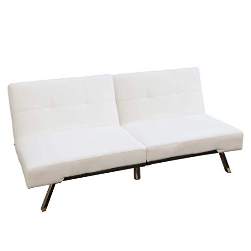 Abbyson Living Aspen Leather Convertible Sofa Bed - Contemporary Design, Pull-Out Bed, Ivory