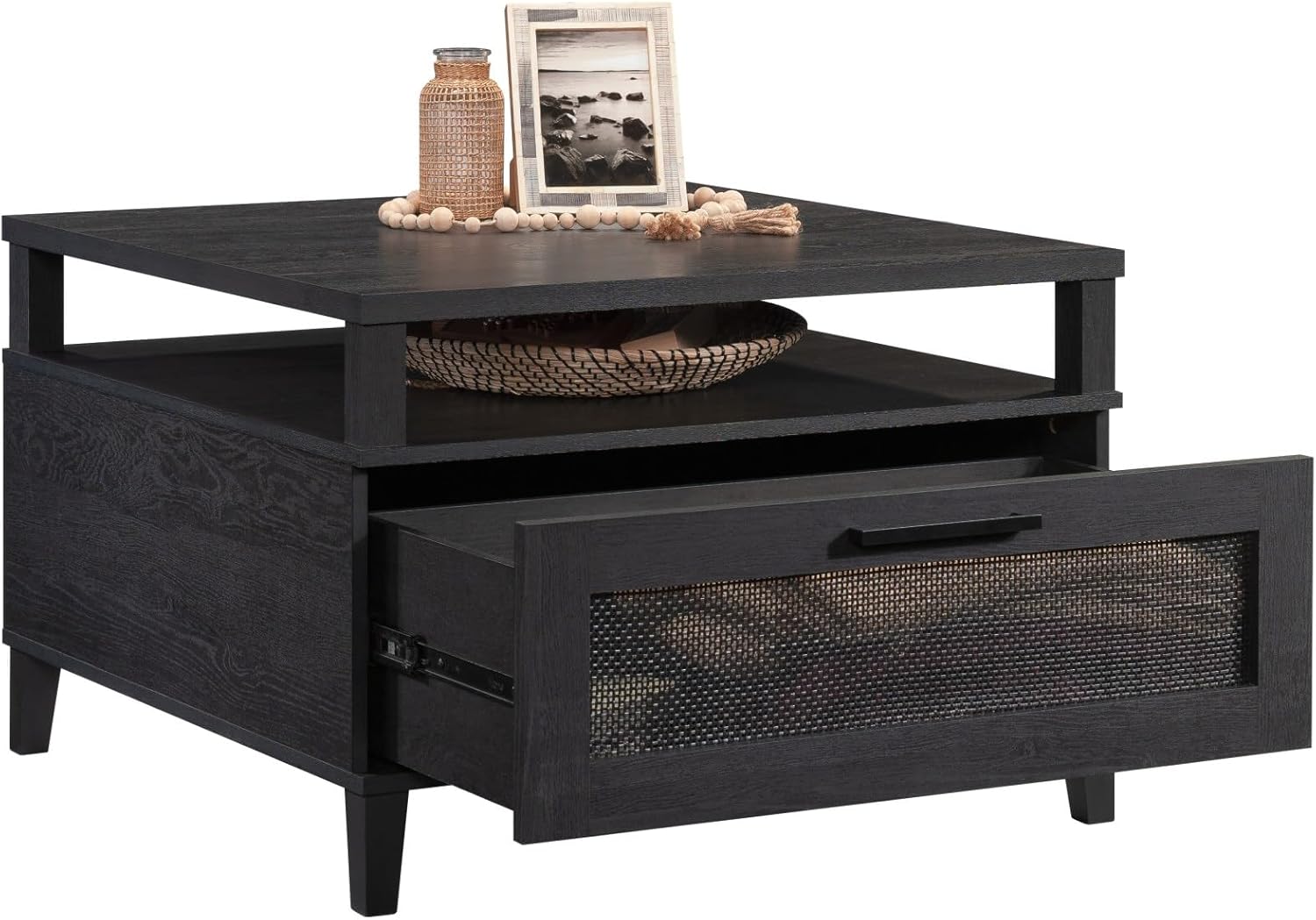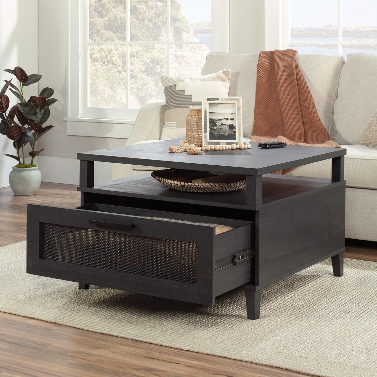 Sauder Tiffin Line Square Coffee Table with Drawer, 21"H x 31-1/2"W x 31-1/2"D, Raven Oak