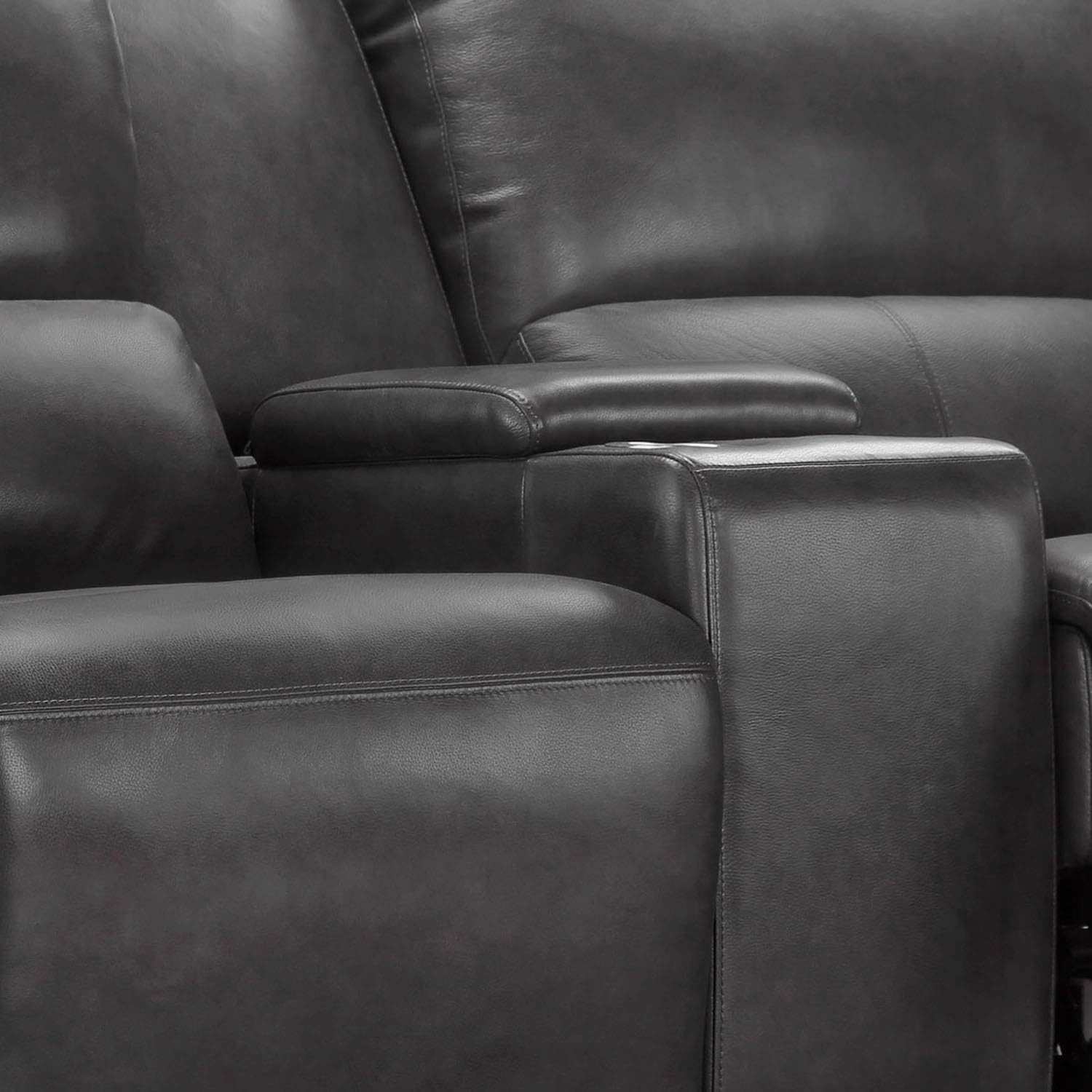 Abbyson Living Premium Top Grain Leather Upholstered Power Reclining Loveseat with Center Console, Grey