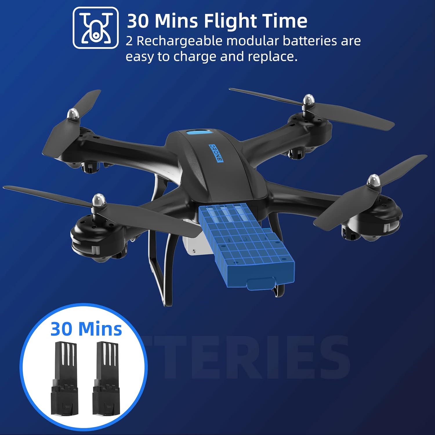 Drone with 1080P HD Camera for Adults Kids, WiFi Live Video FPV Drones for Beginners, RC Quadcopters with Altitude Hold, Headless Mode, 3D Flip, One Key Take Off for Kids with 2 Batteries