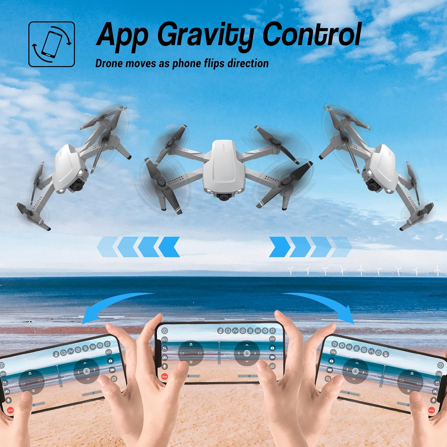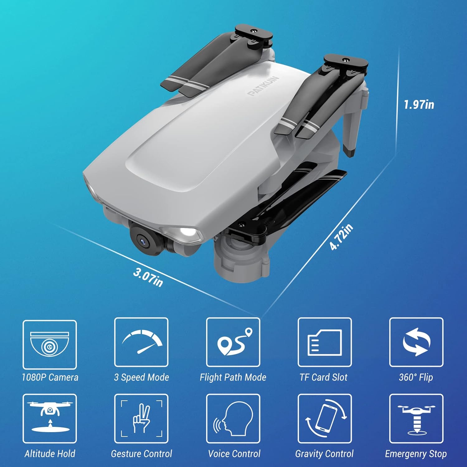 Drone with Camera for Adults, Patikuin S300 HD 1080P FPV Drones for Adults Kids, Foldable RC Quadcopter Drone for Beginners with 5GHz FPV Transmission, TF Card Slot, Gesture Control, Gravity Sensor, Altitude Hold, 3D Flip, Trajectory Flight, 2 Batter