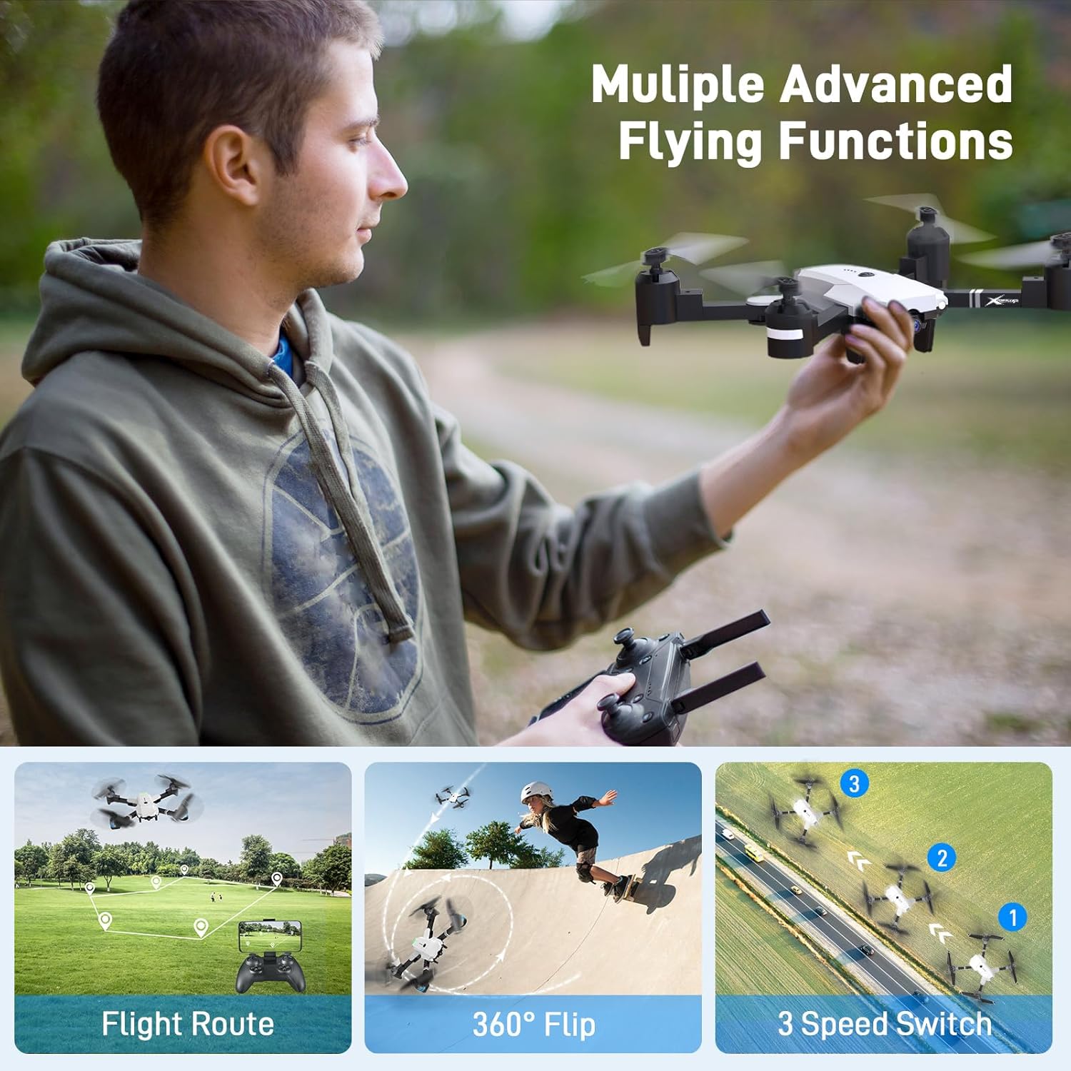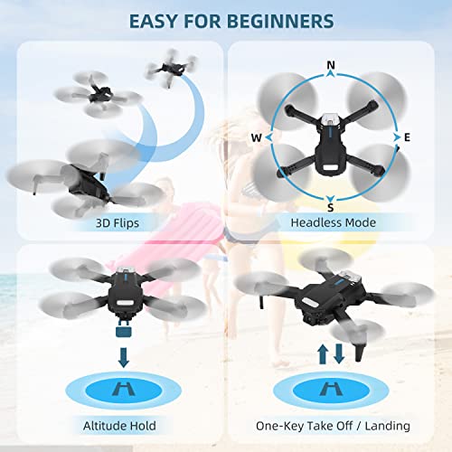 Drones With Camera For Adults 1080P HD, Foldable FPV Drone, Mini Drone with Camera, Headless Mode, Altitude Hold, 360° Flip, Speed Adjustment, One Key Start, Remote Control Toys Gifts (2×Camera)