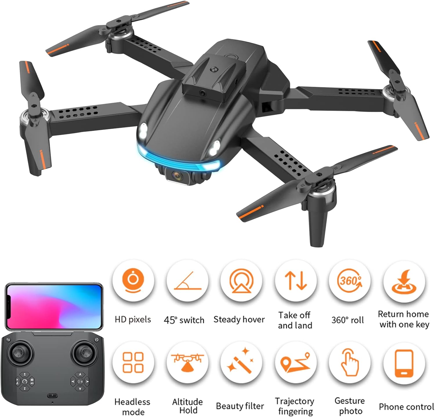Drone With 1080P HD FPV Camera Remote Control Toys Gifts For Boys Girls With Altitude Hold Headless Mode One Key Start Speed Adjustment foldable can Flips have wifi/gestrue recognition function (black)