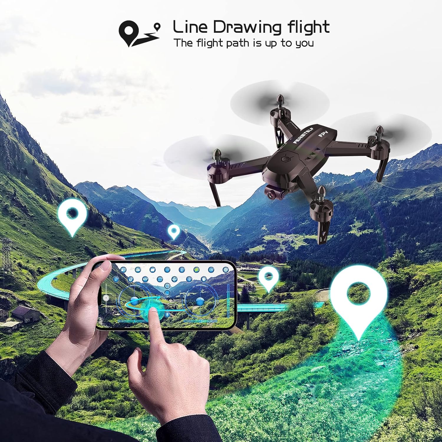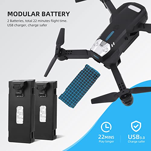 Drones for kids, Mini Drone with 1080P HD FPV Dual Camera with Altitude Hold, Headless Mode, 3D Flips, One Key Take Off/Landing, 2 Modular Batteries - 22 Mins Flight Time, Black