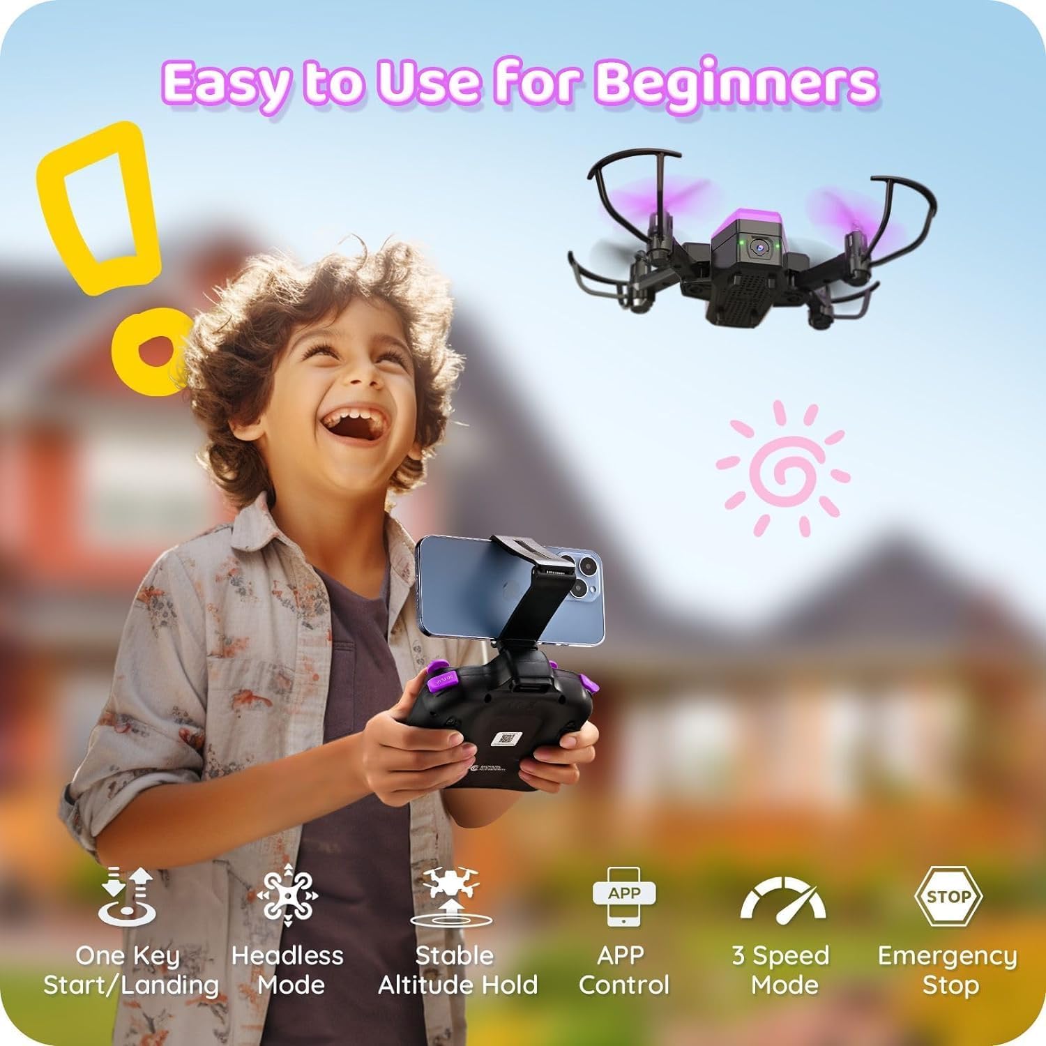 ATTOP Drone with Camera for Adults, 1080P Live Video Camera Drone for Kids 8-12, Beginner Friendly with 1 Key Fly/Land/Return, FPV Drone w/Emergency Stop, VR Mode, 360° Flip, 2 Batteries, Gift Ideas