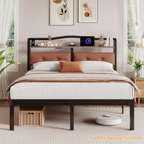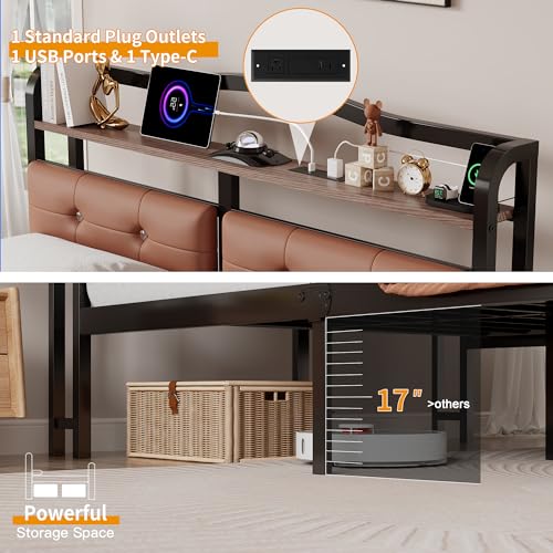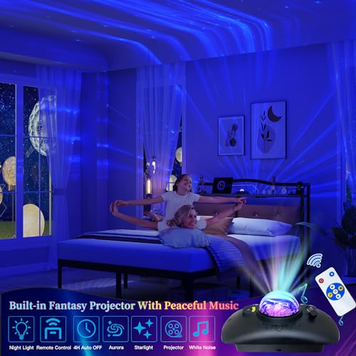 Twin Bed Frame - Twin Bed Frame with Headboard and Galaxy Projection Lights, 18 in Heavy Duty Metal Bed Frame No Box Spring Needed with USB Charging Station- Easy Assembly and Noise Free