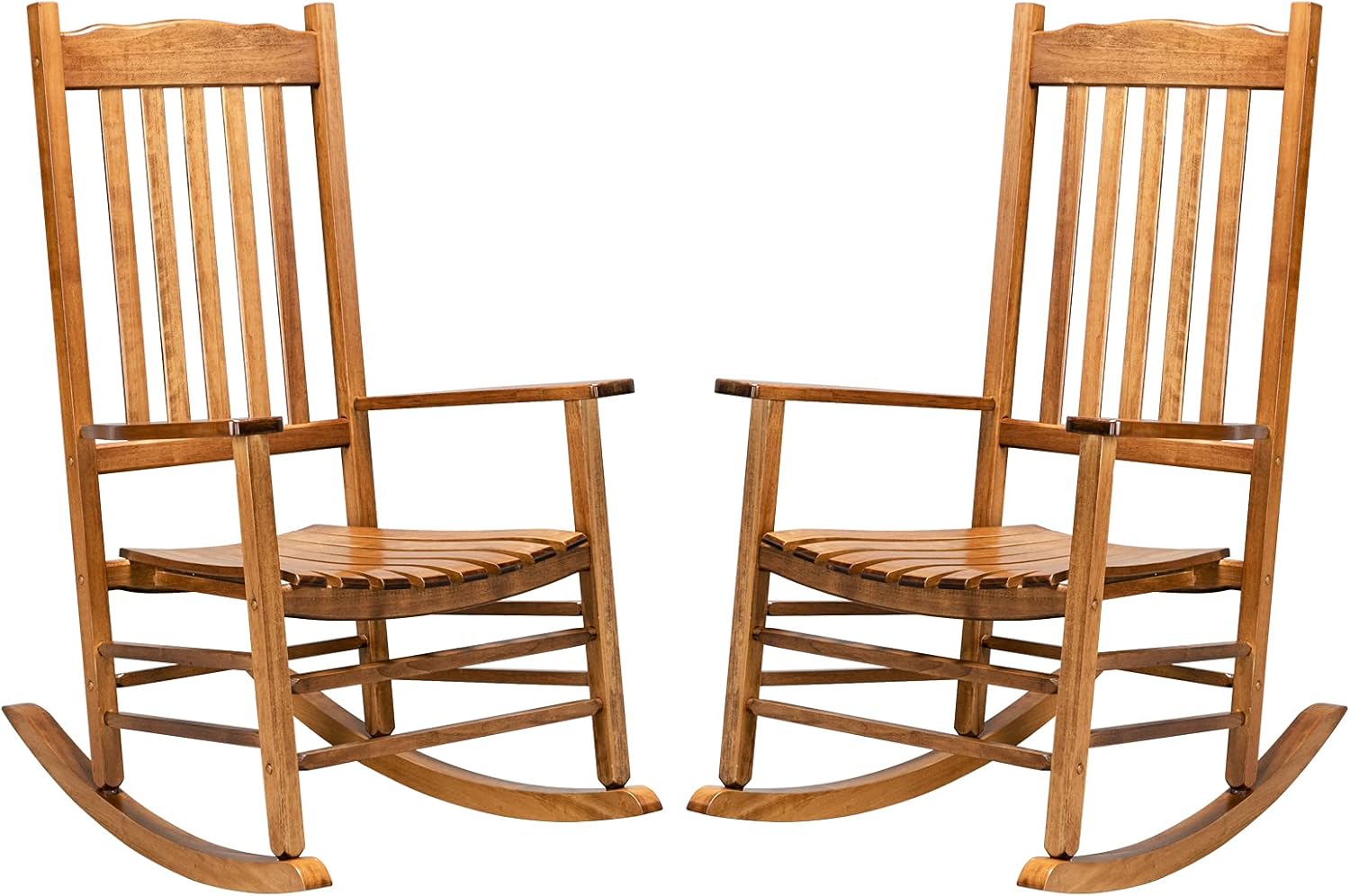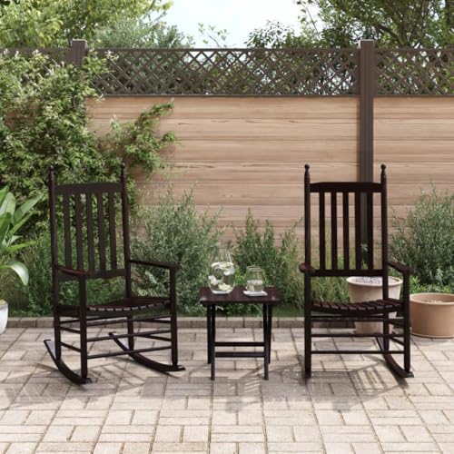 Rocking Chairs with Curved Seats 2 pcs Brown Solid Wood Poplar,Comfortable Wooden Rocking Chairs for Outdoor and Indoor Relaxation Outdoor Seating Furniture