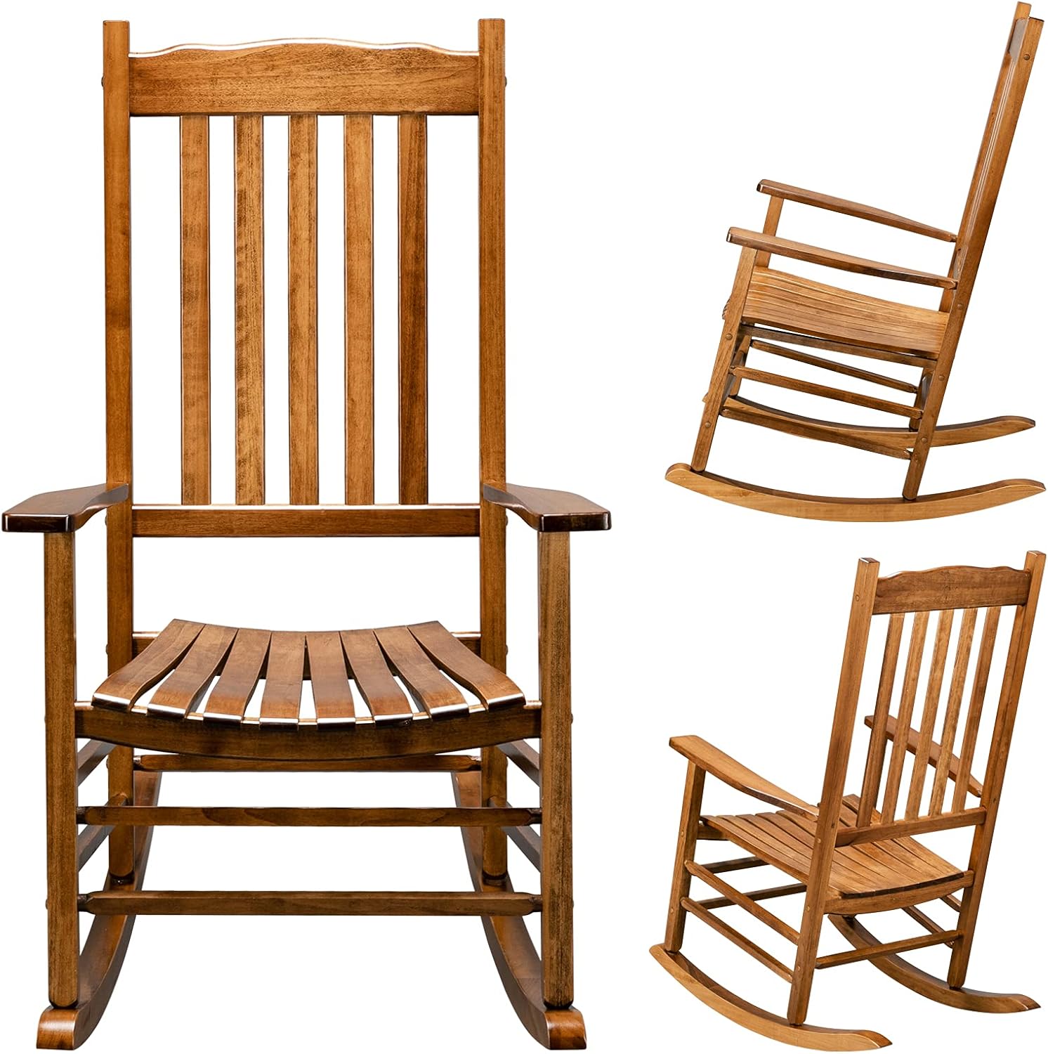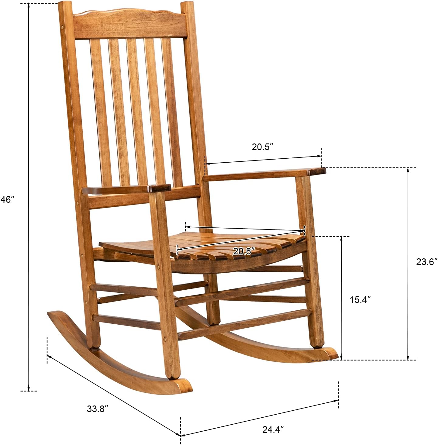 Patio Rocker Chair,Wooden Rocking Chair Outdoor with High Back,Rocking Chair Indoor Easy to Assemble for Garden,Lawn, Balcony, Backyard,Porch,Wooden Rocking Chair,Porch Rocker 62 x 86 x117CM