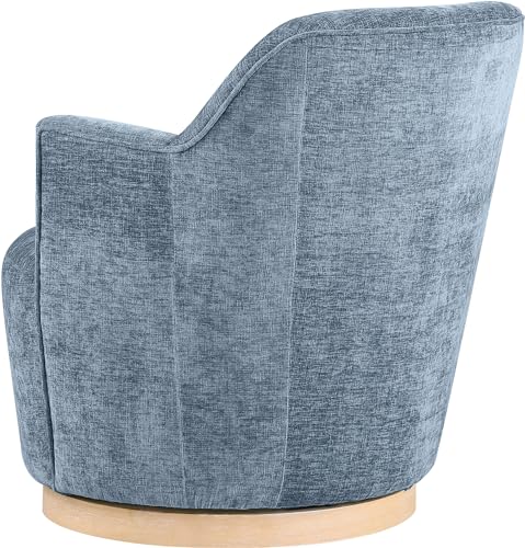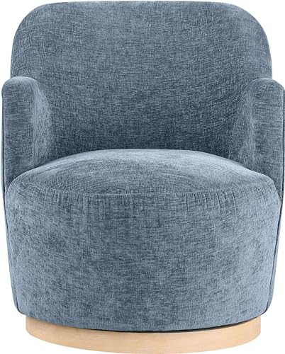 Meridian Furniture Clarita Collection Modern | Contemporary Swivel Accent Chair with Soft Chenille Fabric, Wood Finish Base, 26.5" W x 30.5" D x 31" H, Blue