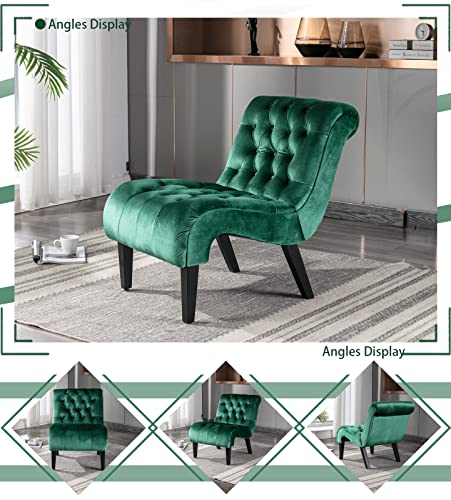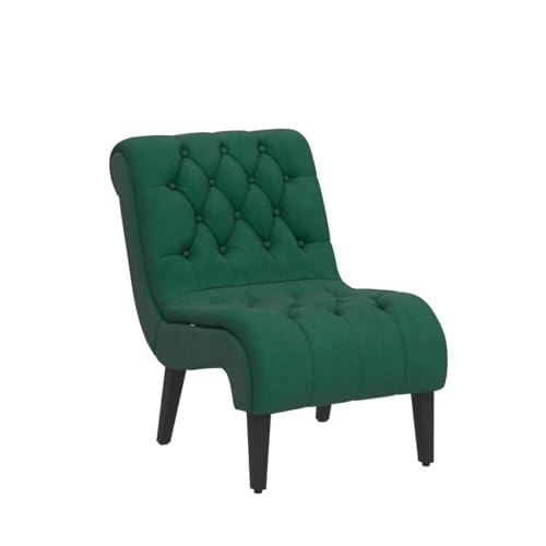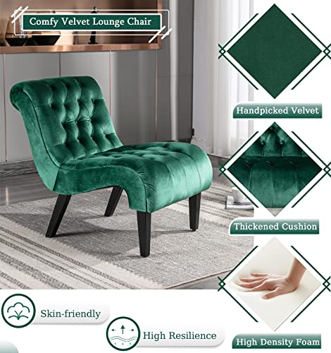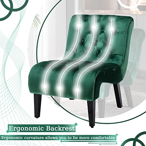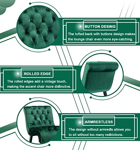 Comfy Velvet Accent Chair Set of 2, Upholstered Armless Side Chair for Living Room, Modern Lounge Chair with Tufted Back and Rolled Edge, Comfy Reading Chair with Solid Rubber Wooden Legs, Light Blue