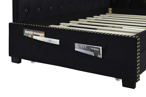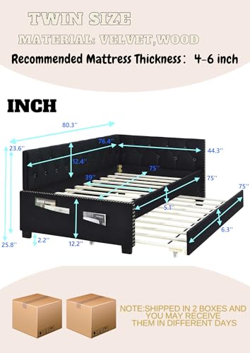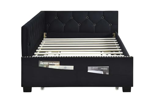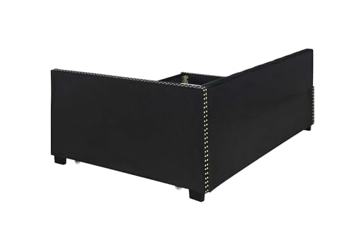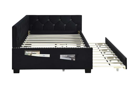 SOFTSEA Twin Upholstered Daybed with Trundle, Modern L-Shaped Daybed with Storage & Trundle, Velvet Corner Sofa Bed Daybed Frame with Tufted Backrest for Kids Teens Adults, Black