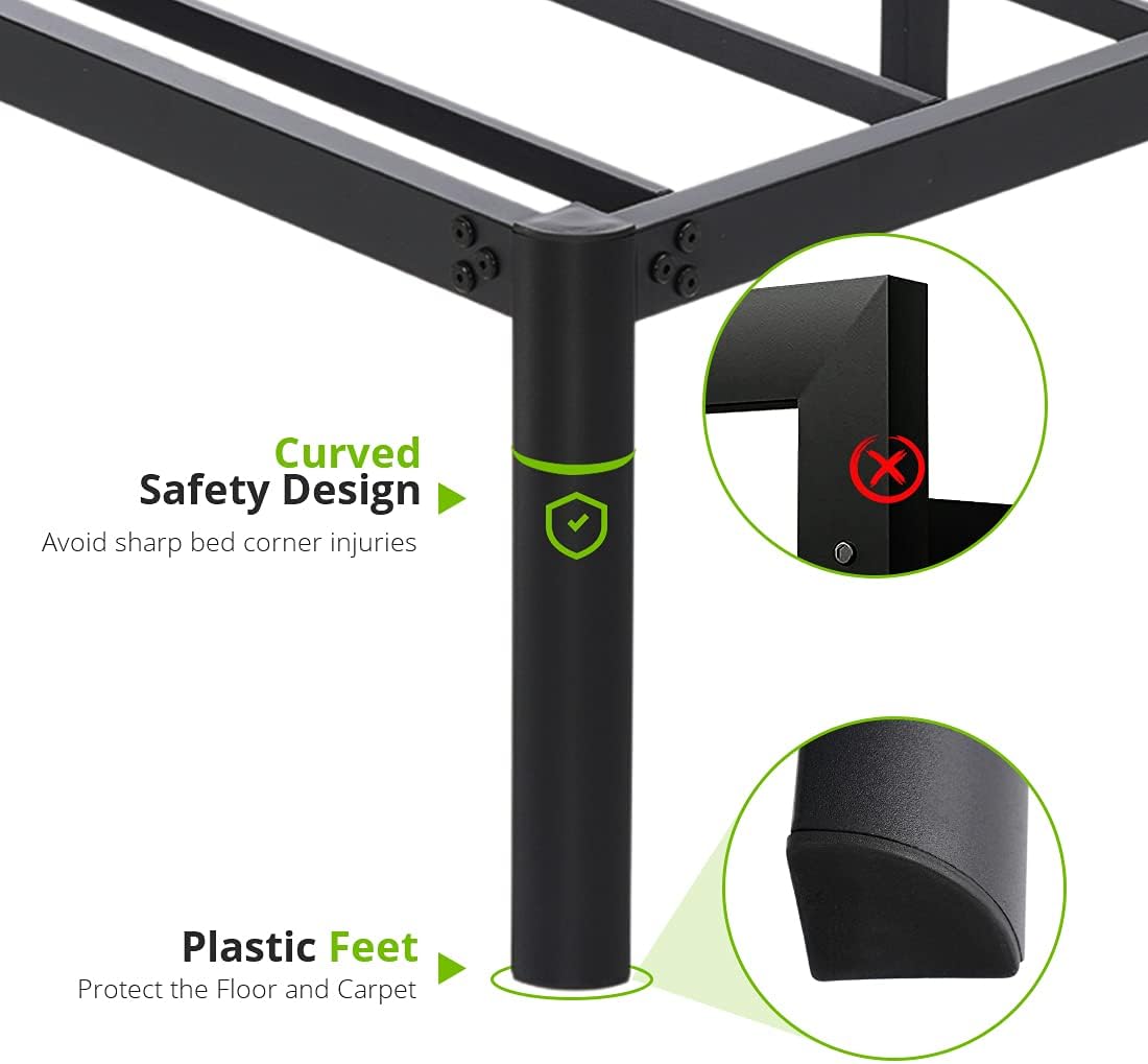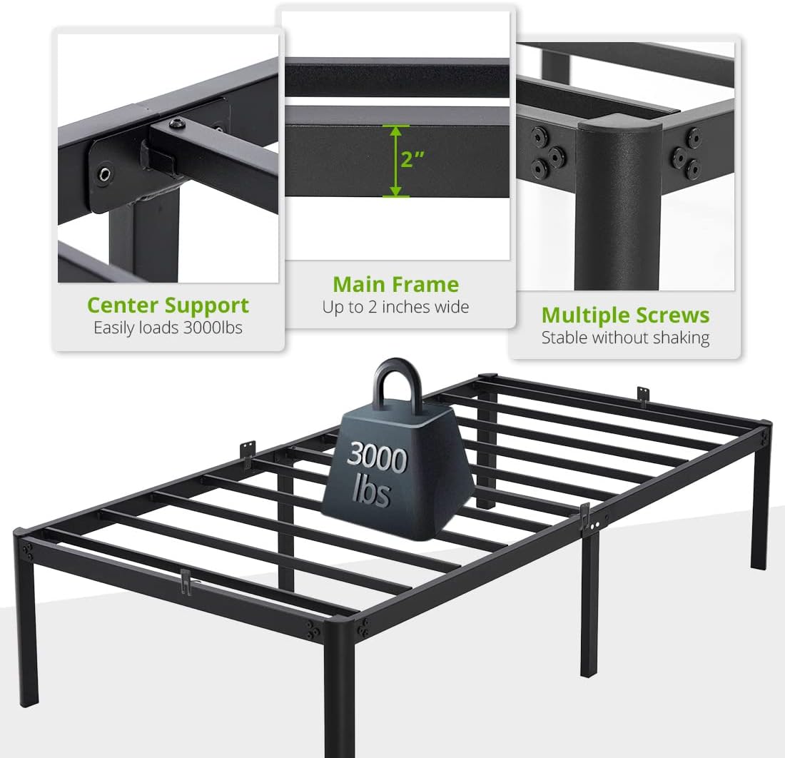 16 Inch Metal Platform Bed Frame with Anti-Collision Round Legs, 3000lbs Heavy Duty Mattress Foundation, Easy Assembly/Silent/Anti-Shake/Non-Slip/No Box Spring Needed, Twin XL