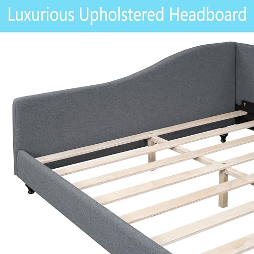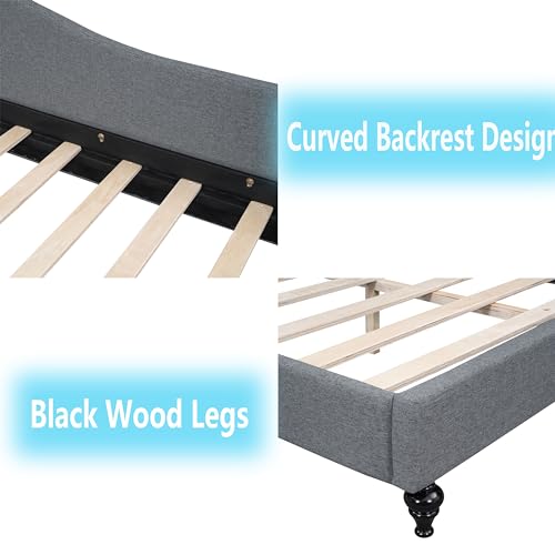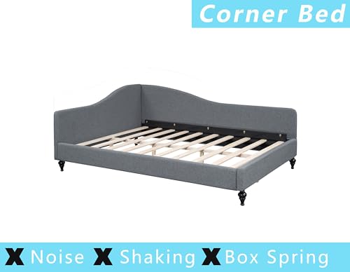 Upholstered Corner Bed Frame Twin with Headboard and Curved Backrest,Modern Daybed with Black Wood Legs,Wood Slats(Cream, Twin)