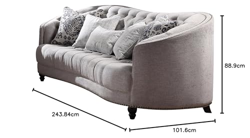 Acme Saira Tufted Accent Chair with 1 Pillow in Light Gray and Blue Fabric