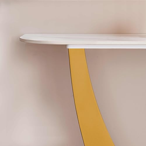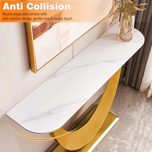 Modern Console Table, 47'' Sintered Stone Narrow Long Entryway Sofa Table, Half-moon Designed Accent Table with Metal Base, Luxurious Entry Table For Hallway Living Room Bedroom, Black & White