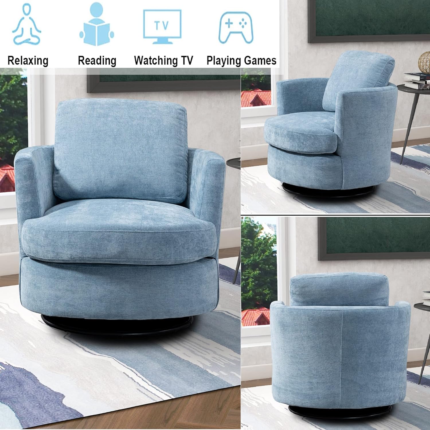 Extra Soft Chenille Swivel Accent Barrel Chair 31.9" W Comfy Round Accent Sofa Chair, Leisure Club Swivel Lounge Chair for Nursery Bedroom Living Room Lounge Hotel Office, Light Blue
