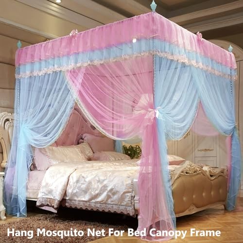 AIKASY Hollow Stainless Steel Twin Canopy Bed Frame, Four Poster Bed Frame, Canopy Bed Curtains Frame - Fits Four Corner Beds, Metal Bed Mosquito Net, Bedroom Deco