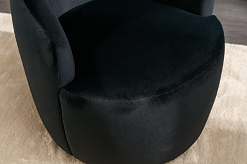 INMOZATA Modern Accent Chair 360 Degree Swivel Chair,Comfy Lounge Sofa Round Barrel Chair,Teddy Fabric Armchairs for Home Sofa Living Room/Bedroom/Waiting Room,Black