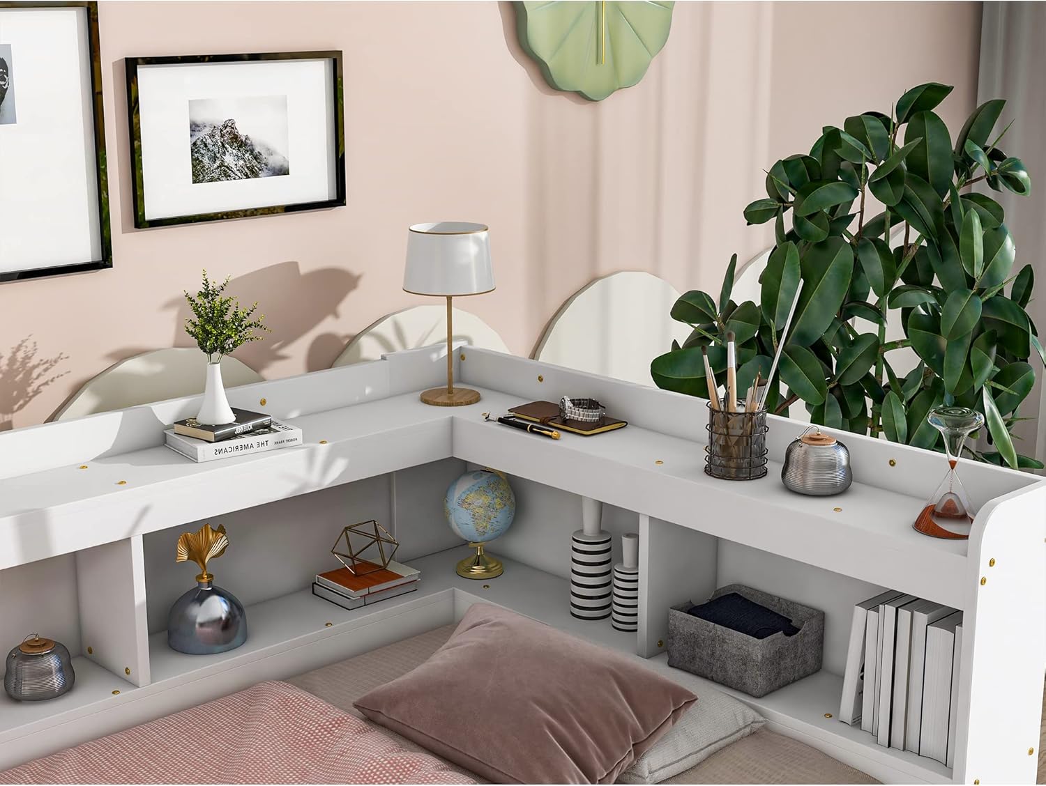 L-Shaped Platform Bed with Trundle, 2 Drawers and Built-in Desk -Platform Bed for Family, Kids, Teens,No Box Spring Needed