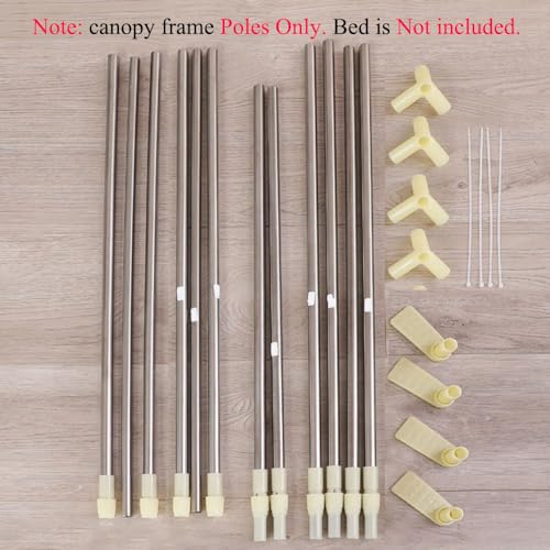 Canopy Bed Frame Twin Size Adjustable Bed Canopy Post Poles, Stainless Steel Bed Canopy Frame Poles for Four Corner Bed Platform Bed Bunk Bed, Silver(Canopy Frame Only)