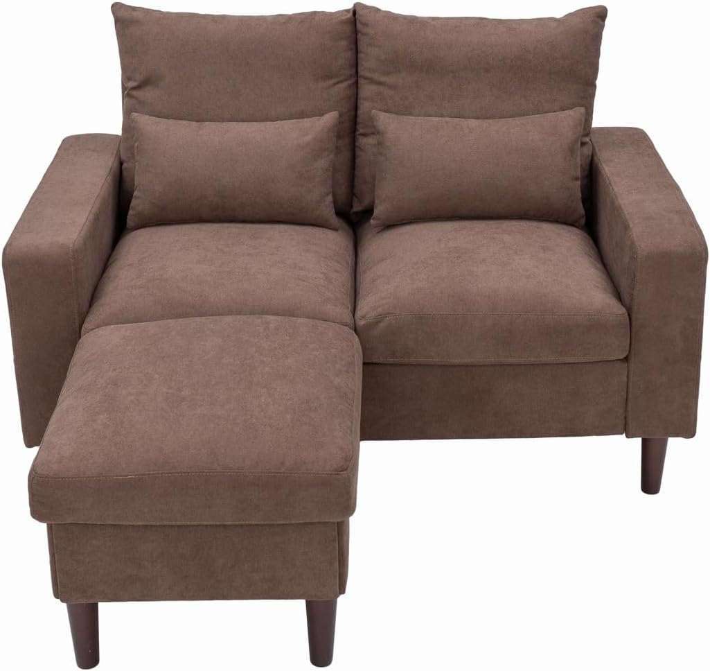 Panana 2 Seater Loveseat Sectional Sofa Couch for Apartment Sectional Set with Convertible Ottoman Footstool (Brown, 2 Seater with Ottoman Stool)