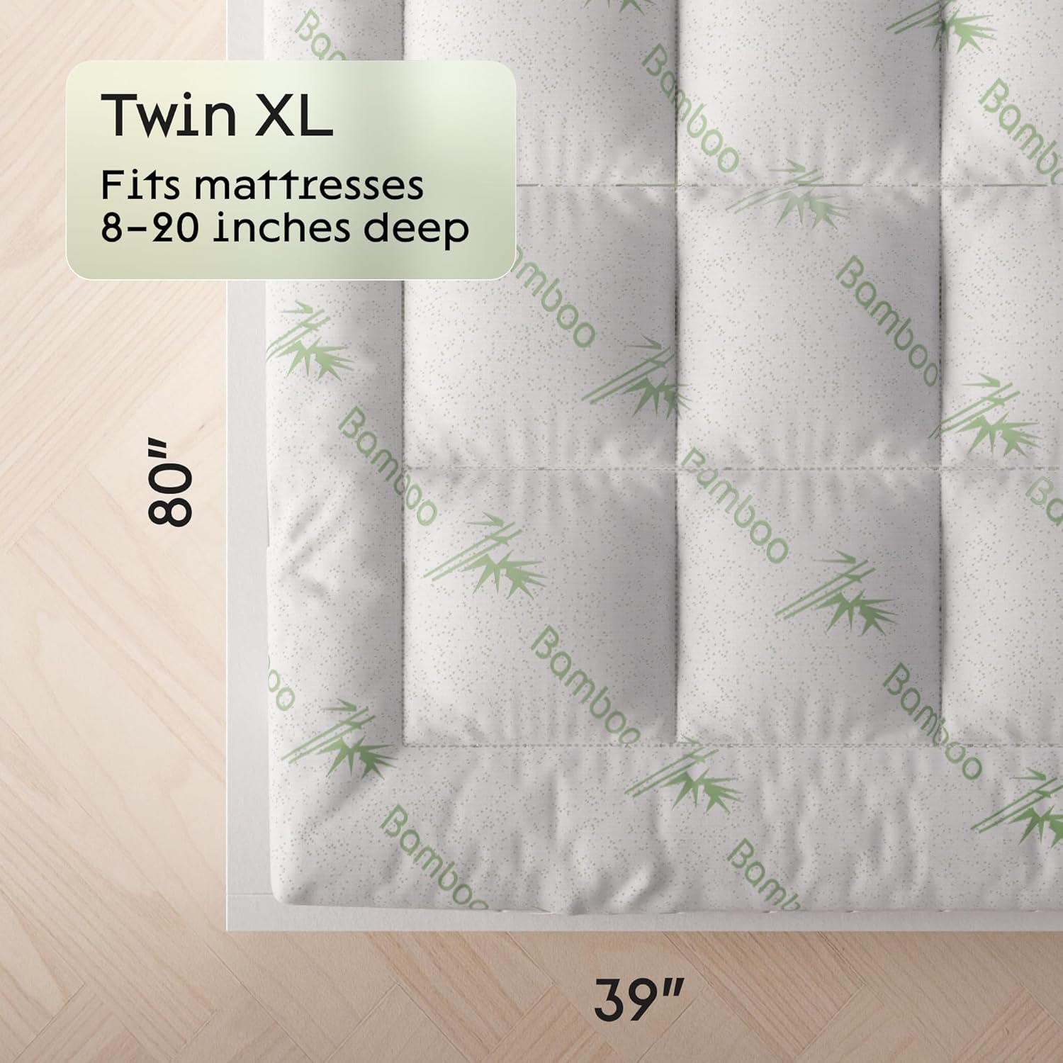 Bamboo Twin XL Gusset 39x80 Inches Soft Cooling Plush Down Alternative Quilted 4 Corner Skirt Protector Mattress Pad Reviver Enhancer (Viscose Made from Bamboo)
