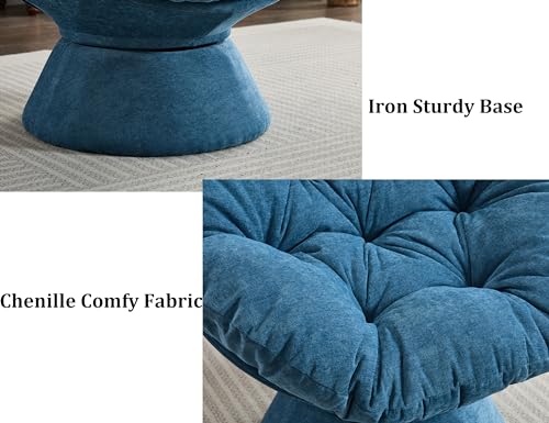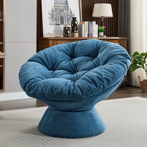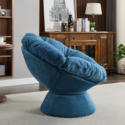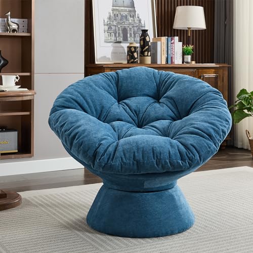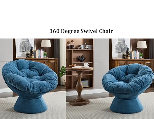 JULYFOX 360 Degree Swivel Papasan Chair, Chenille Fabric Overstuffed Round Wood Swivel Accent Chair with Iron Base for Living Room Bedroom Home Office (Light Blue, 37 inch)