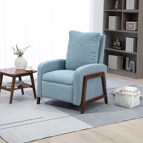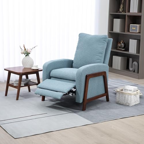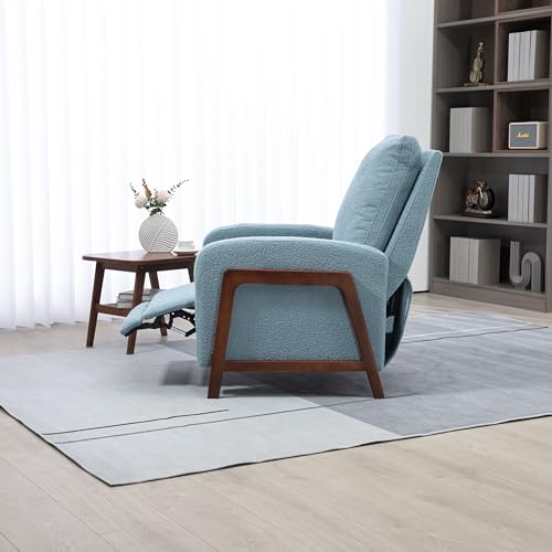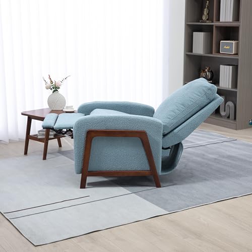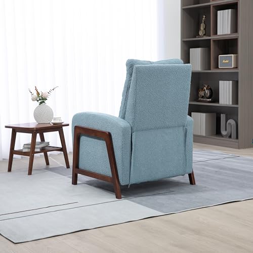 Recliner Chair for Adults, Accent Chair Boucle Small Recliner Home Theater Seating with Lumbar Support, Adjustable Lazy Comfy Reading Chair with Padded Seat Backrest for Living Room, Light Blue