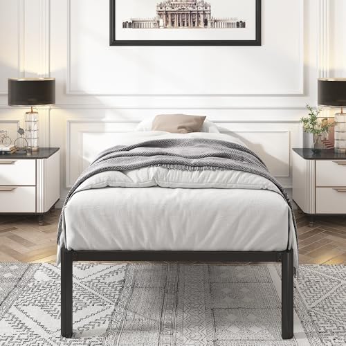 Twin Size Bed Frame,18 Inch Heavy Duty Platform Bed Frame with Round Corner Edge Legs/No Box Spring Needed/Noise Free/Steel Slat Support/Easy Assembly