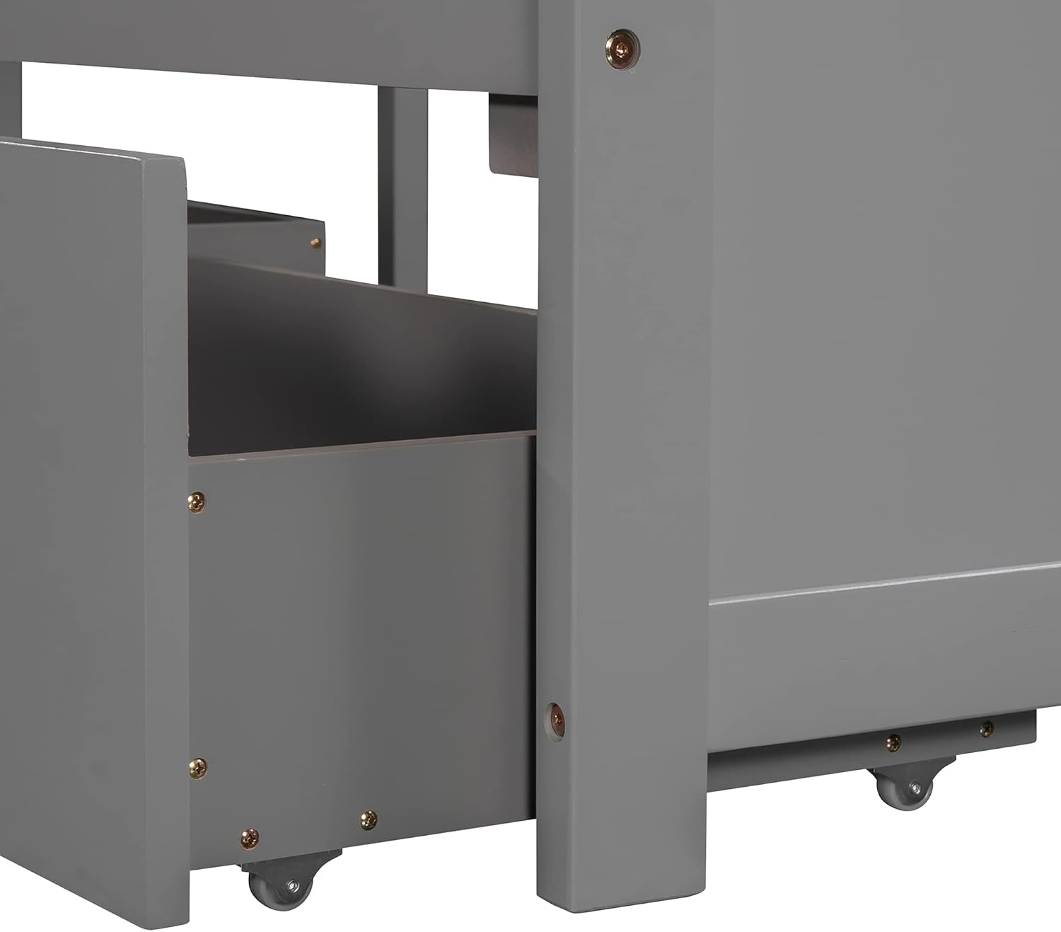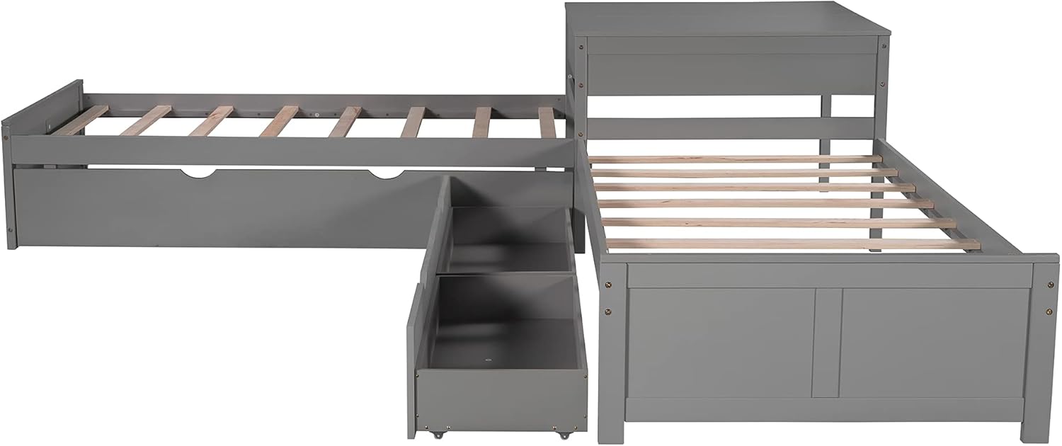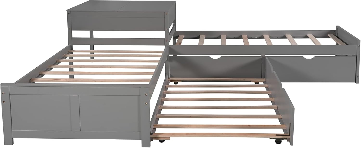 Harper & Bright Designs L-Shaped Platform Bed with Trundle, Wooden Corner Daybed with Storage Drawers and Desk, 3 Beds for Kids Teens Bedroom Furniture (Twin, Gray)