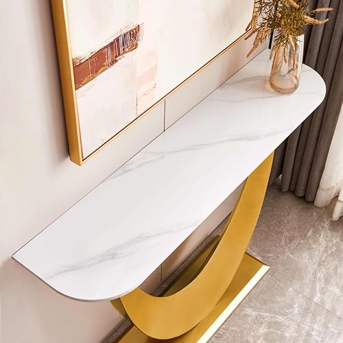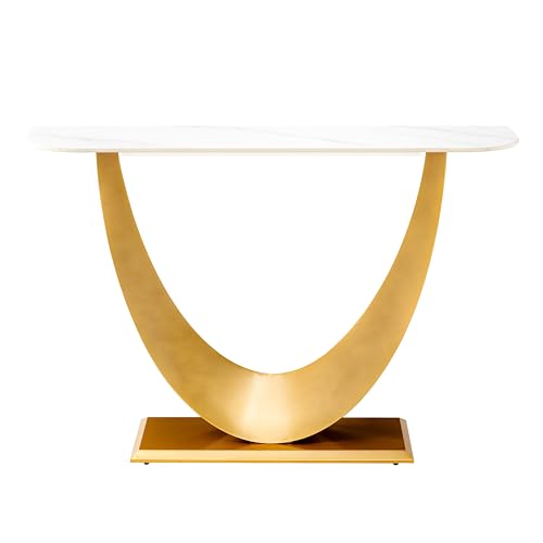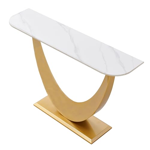 Modern Console Table with Geometric Base, Faux Marble Foyer Hallway Table for Entryway, Living Room