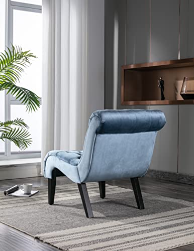 Armless Accent Chair, Upholstered Button Tufted Living Room Chairs with Wood Legs, Comfy Frosted Velvet Lounge Chair Reading Chair for Bedroom (Light Blue)