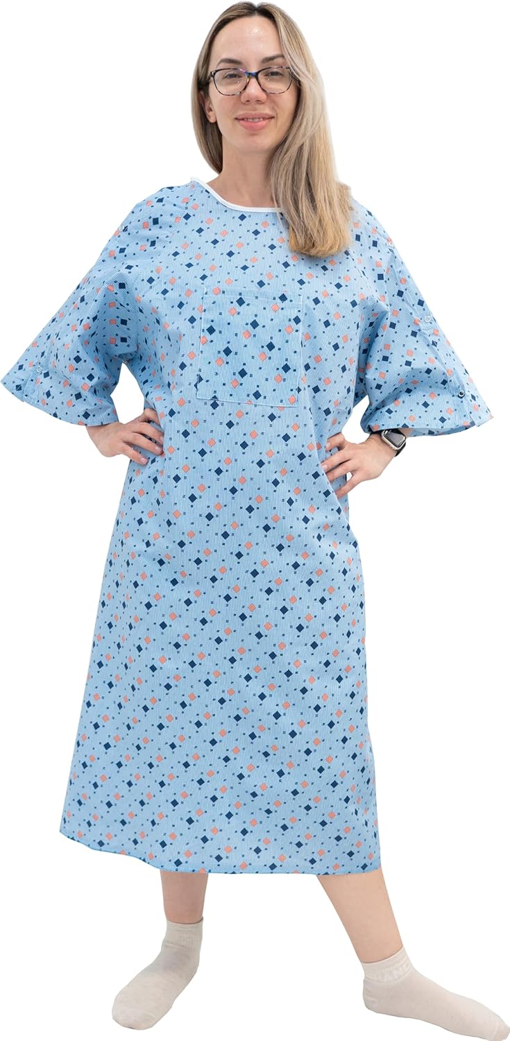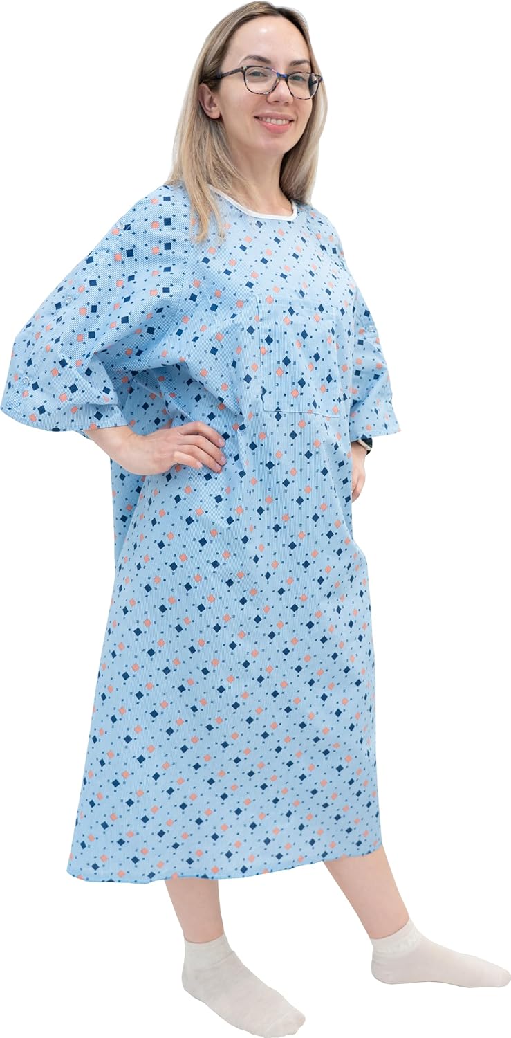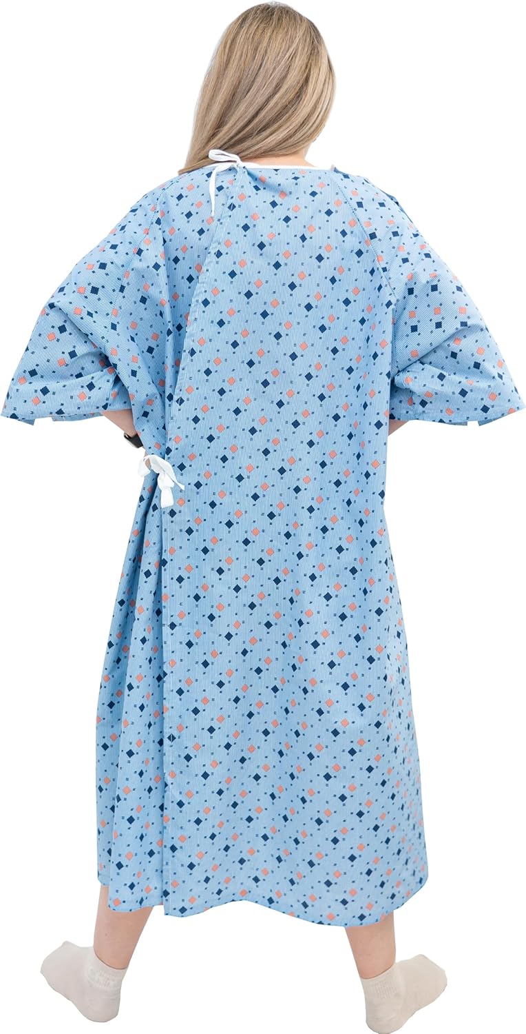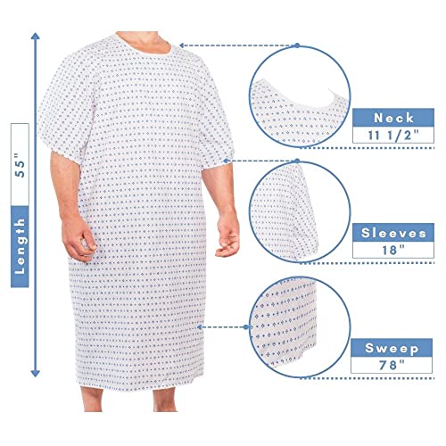 3 Pack - Unisex Hospital Gown IV Snap Sleeves - Patient Gowns Comfortably Fits Sizes up to 2XL - Tie Back - Diamond Pattern Blue