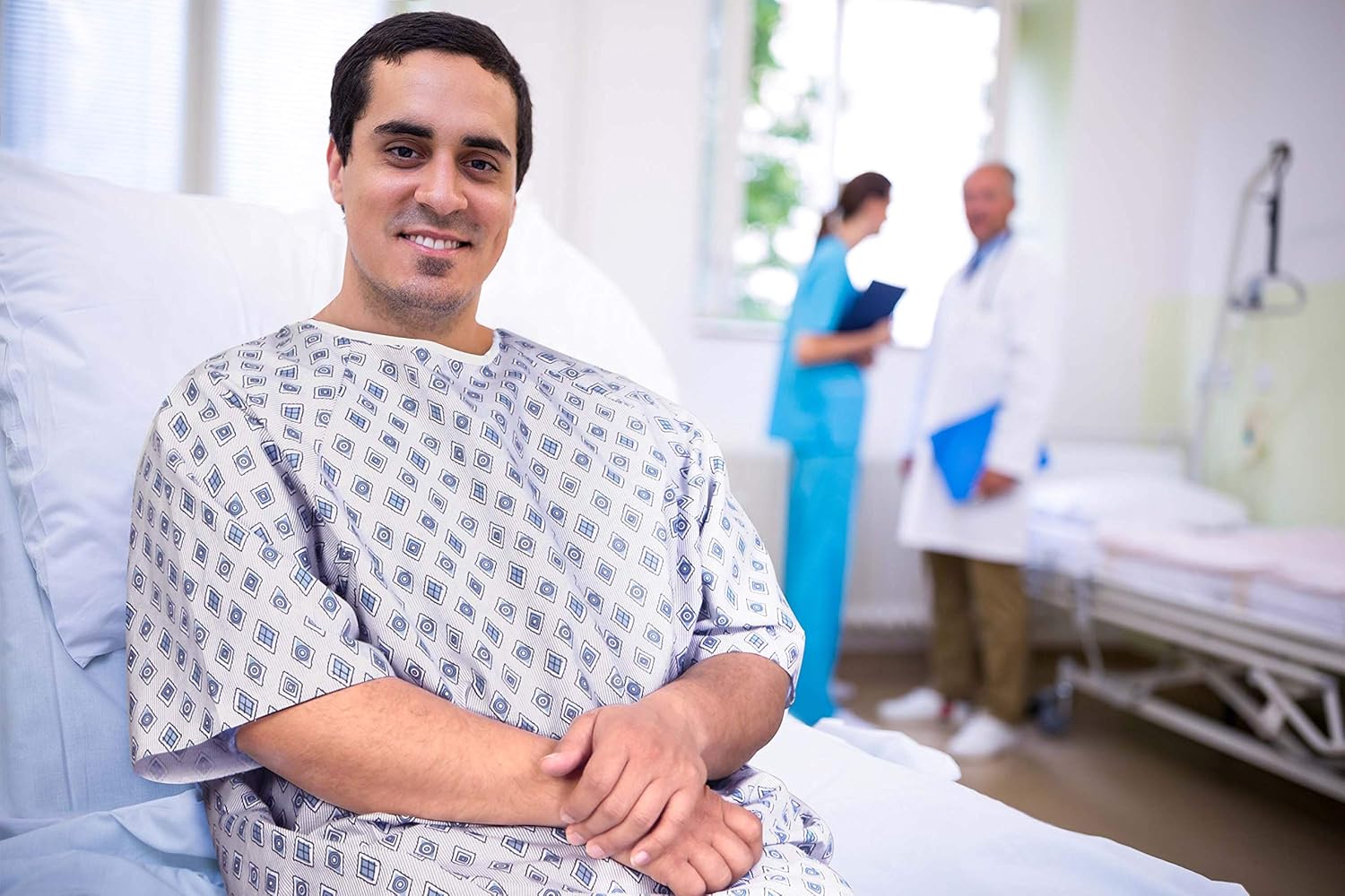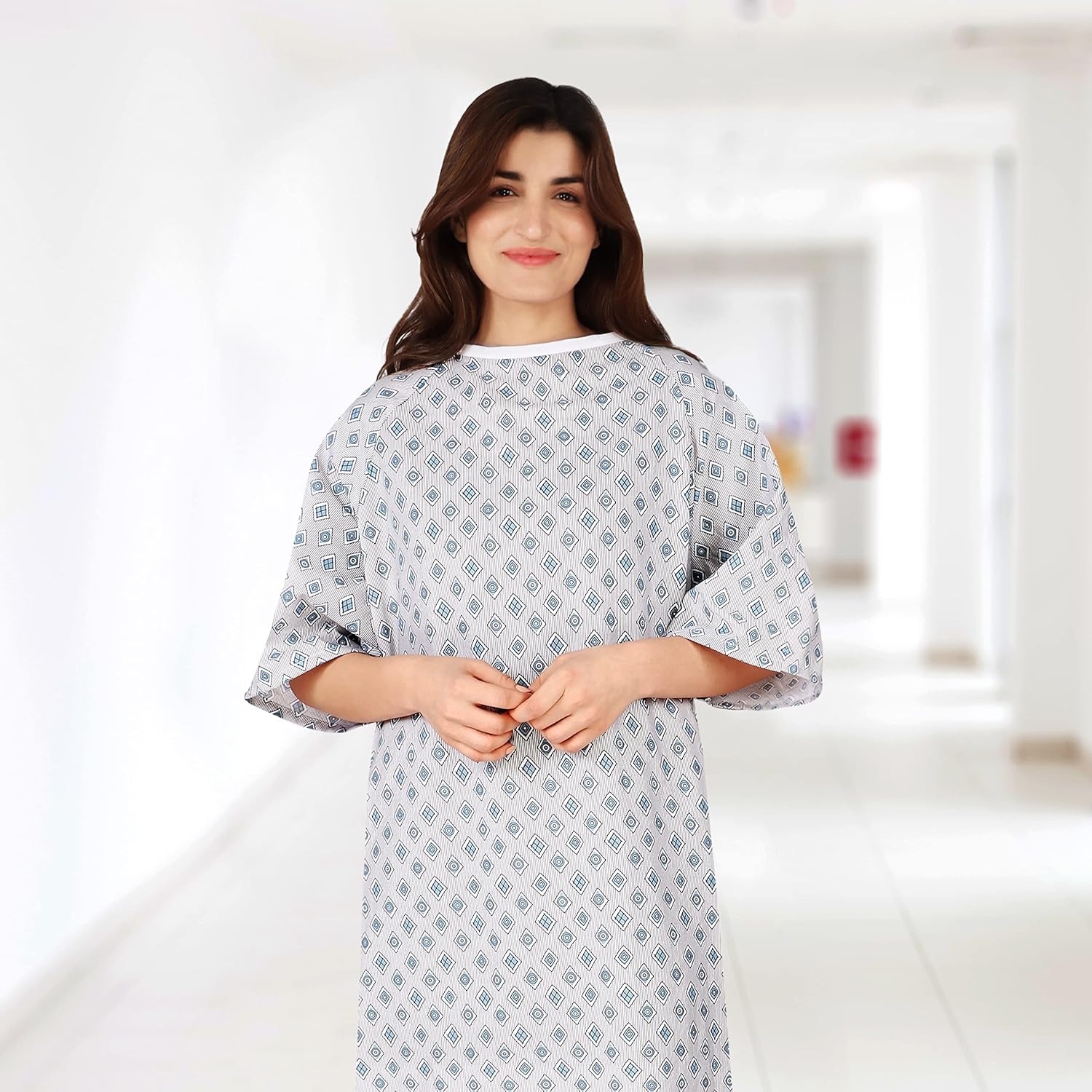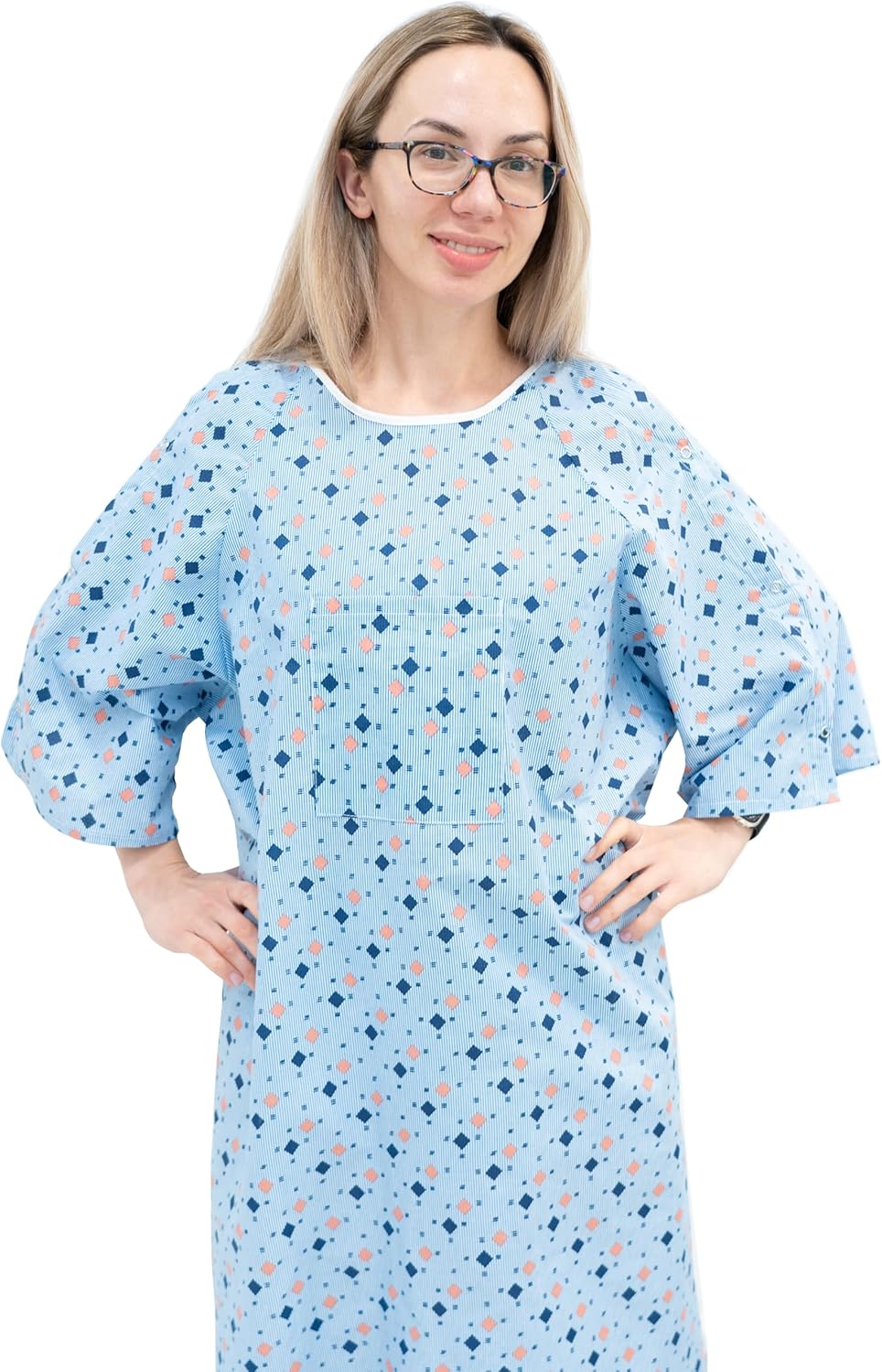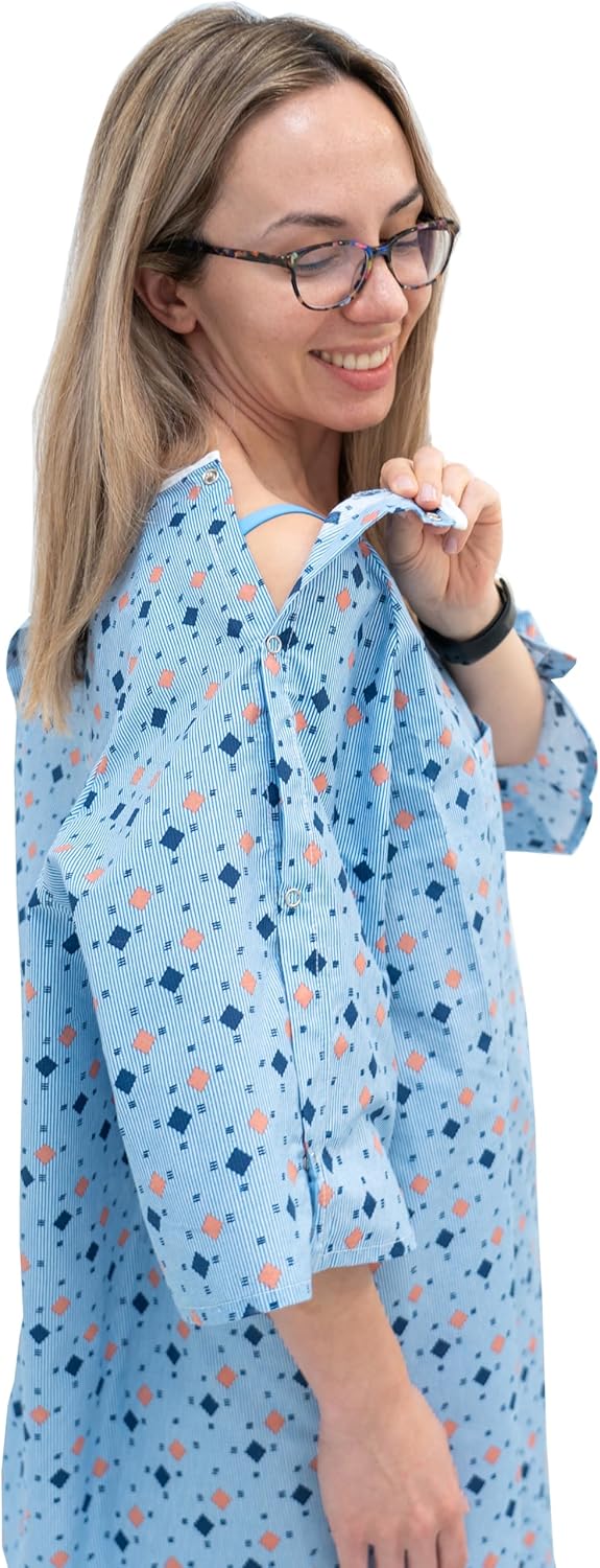 3 Pack - Unisex Hospital Gown IV Snap Sleeves - Patient Gowns Comfortably Fits Sizes up to 2XL - Tie Back - Diamond Pattern Blue