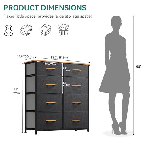 YITAHOME Dresser for Bedroom, Storage Tower with 8 Drawers, Fabric Dresser, Organizer Unit for Bedroom, Living Room & Closets - Sturdy Steel Frame, Easy Pull Fabric Bins & Wooden Top