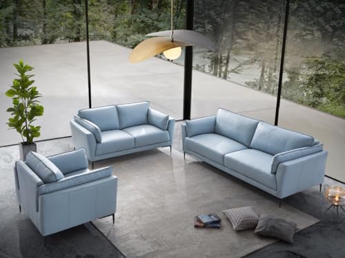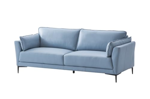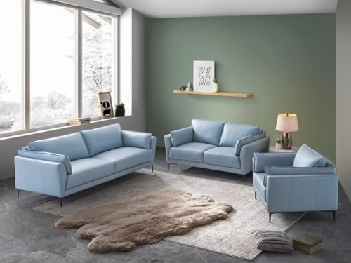 JINS&VICO Chair, Accent Chair, Sofa Chair with Light Blue Top Grain Leather and Black Finish, Living Room Chairs for Office Bed Room Apartement, 32" L X 38" D X 34" H, Light Blue