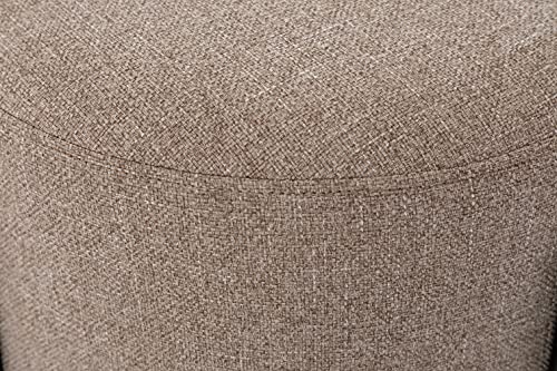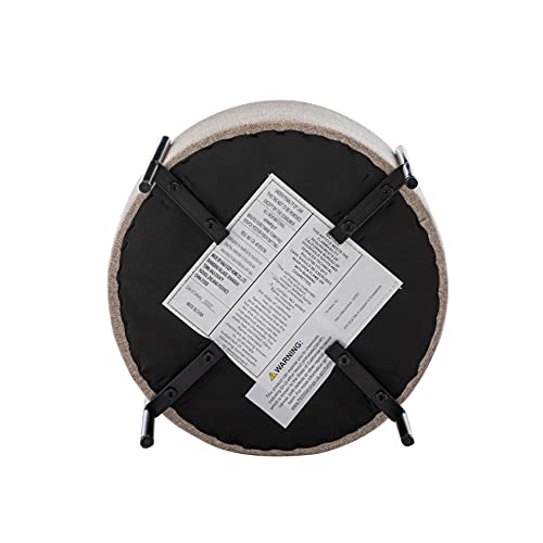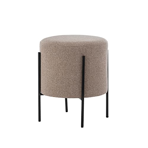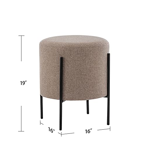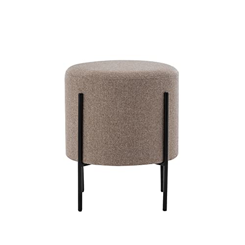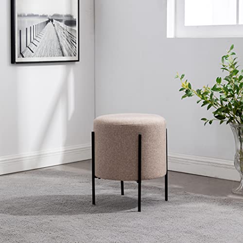 Wovenbyrd Modern Round Ottoman Footstool with Metal Base Legs, 16-Inch Wide, Light Brown Faux Leather