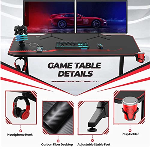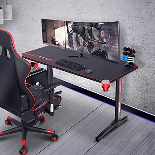 T-Shaped Desk PC Computer Desk with USB Game Handle Rack Cup Holder, 55-inch Game Desk with Free Mouse pad (55.1x23.6x28.5 inch)