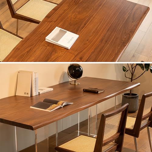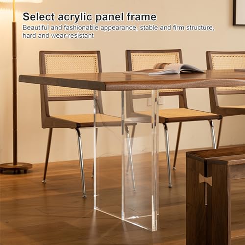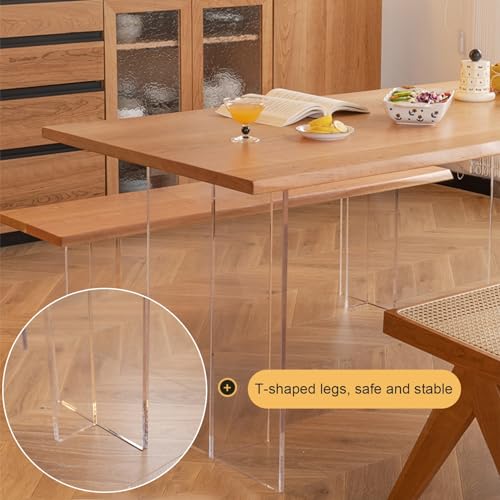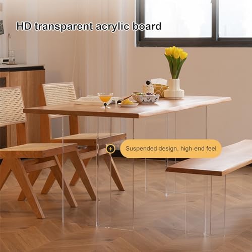 Wooden Desk, Wood Dining Table, Acrylic Suspended Solid Wood Bar, Wooden Computer Desk, with Sturdy T-Shaped Clear Acrylic Base, for Kitchen Dining Room Living Room(Color:A)